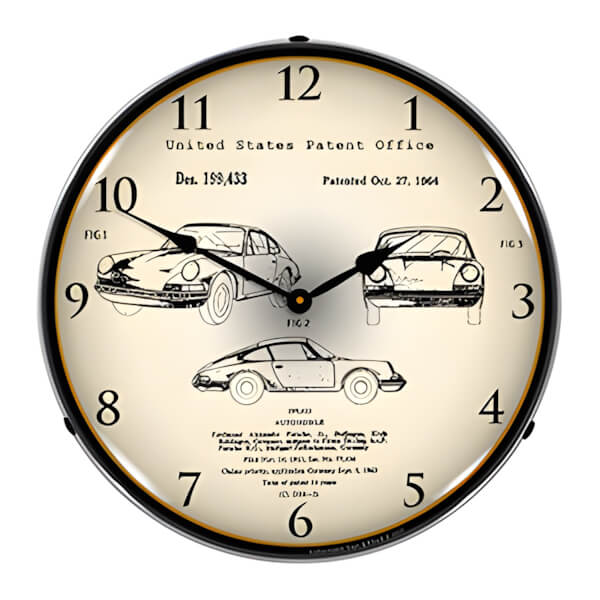 Collectable Sign and Clock 1964 Porsche 911 Patent Blueprint Backlit Wall Clock