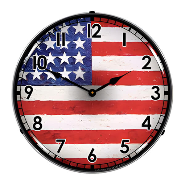 Collectable Sign and Clock USA Flag Backlit Wall Clock