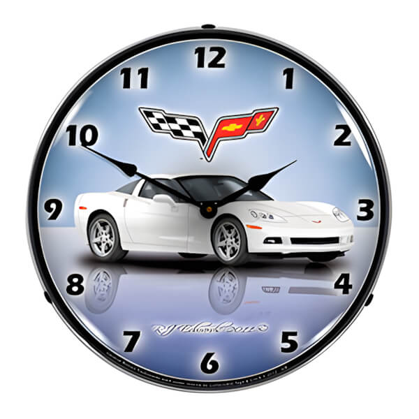 Collectable Sign and Clock C6 Corvette Arctic White Backlit Wall Clock