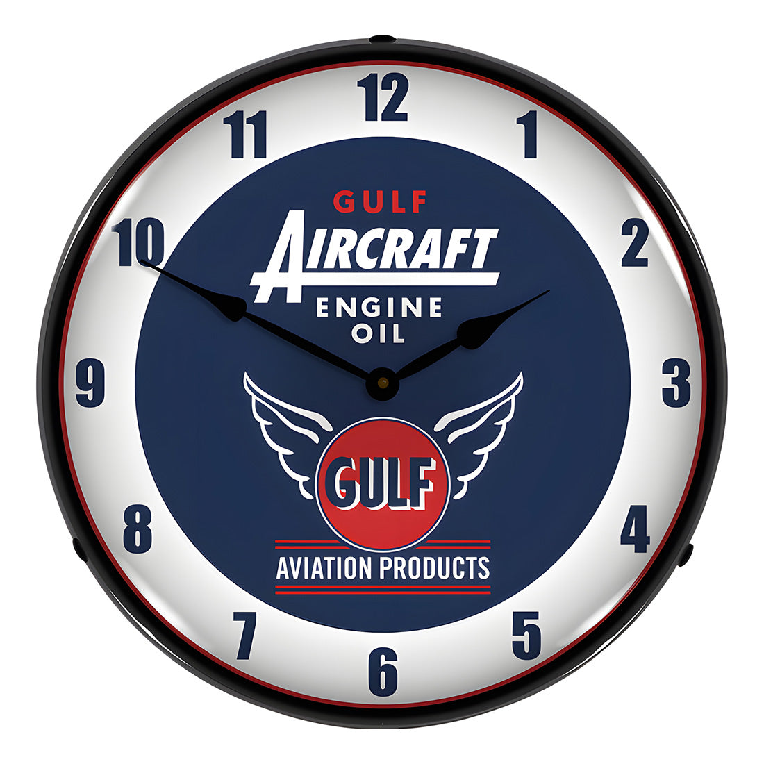 Collectable Sign and Clock Gulf Aircraft Engine Oil Backlit Wall Clock