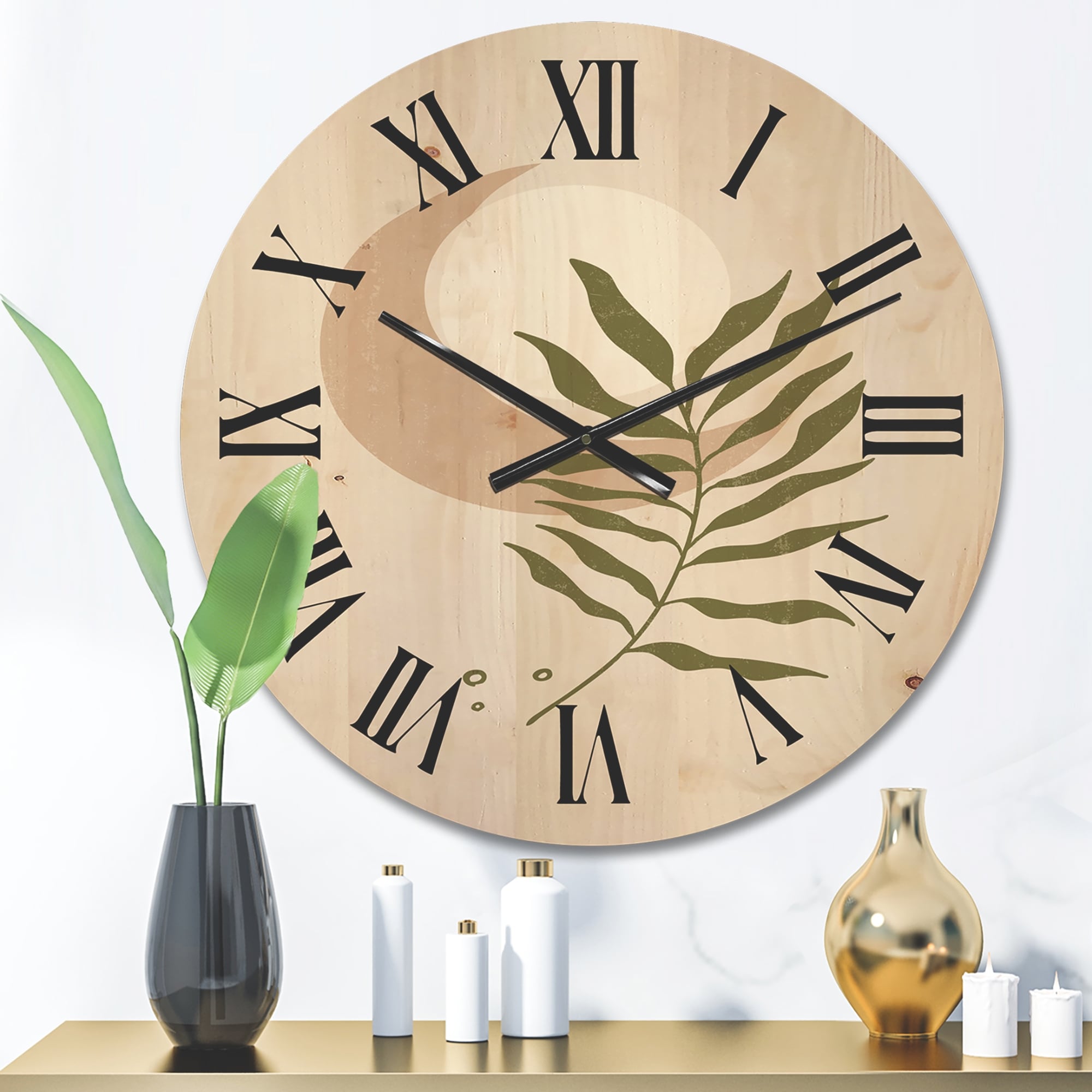 Designart 'Abstract Geometrical Moon With Leaf II' Modern Wood Wall Clock