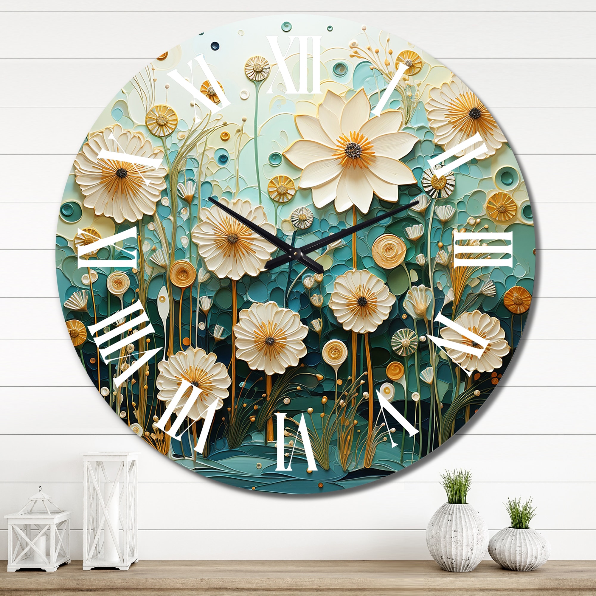Designart 'Blue Hand drawn Roses Shabby Chic Vintage' Oversized Contemporary Wall CLock
