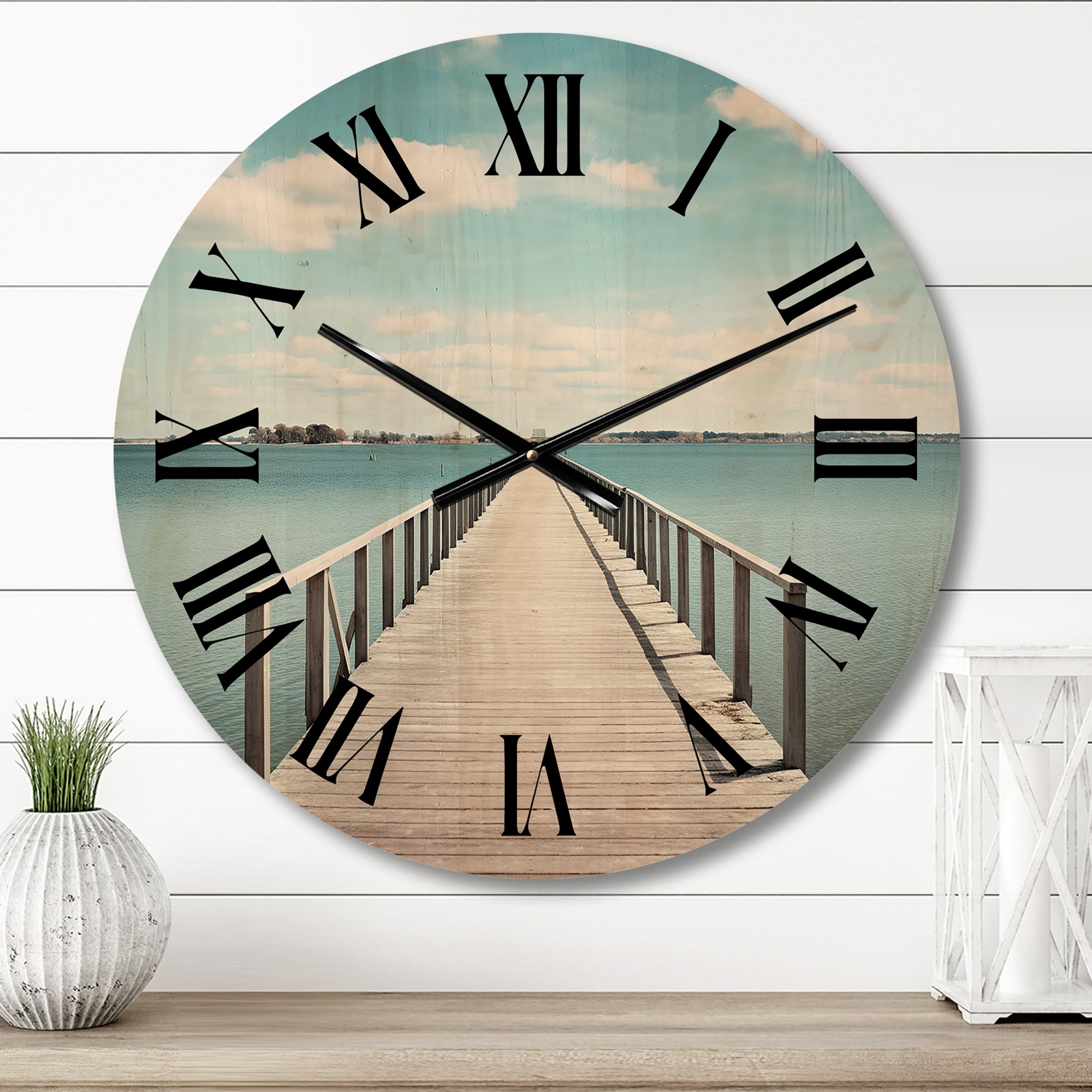 Designart "Pier Lone Pier II" Coastal Pier Oversized Wood Wall Clock