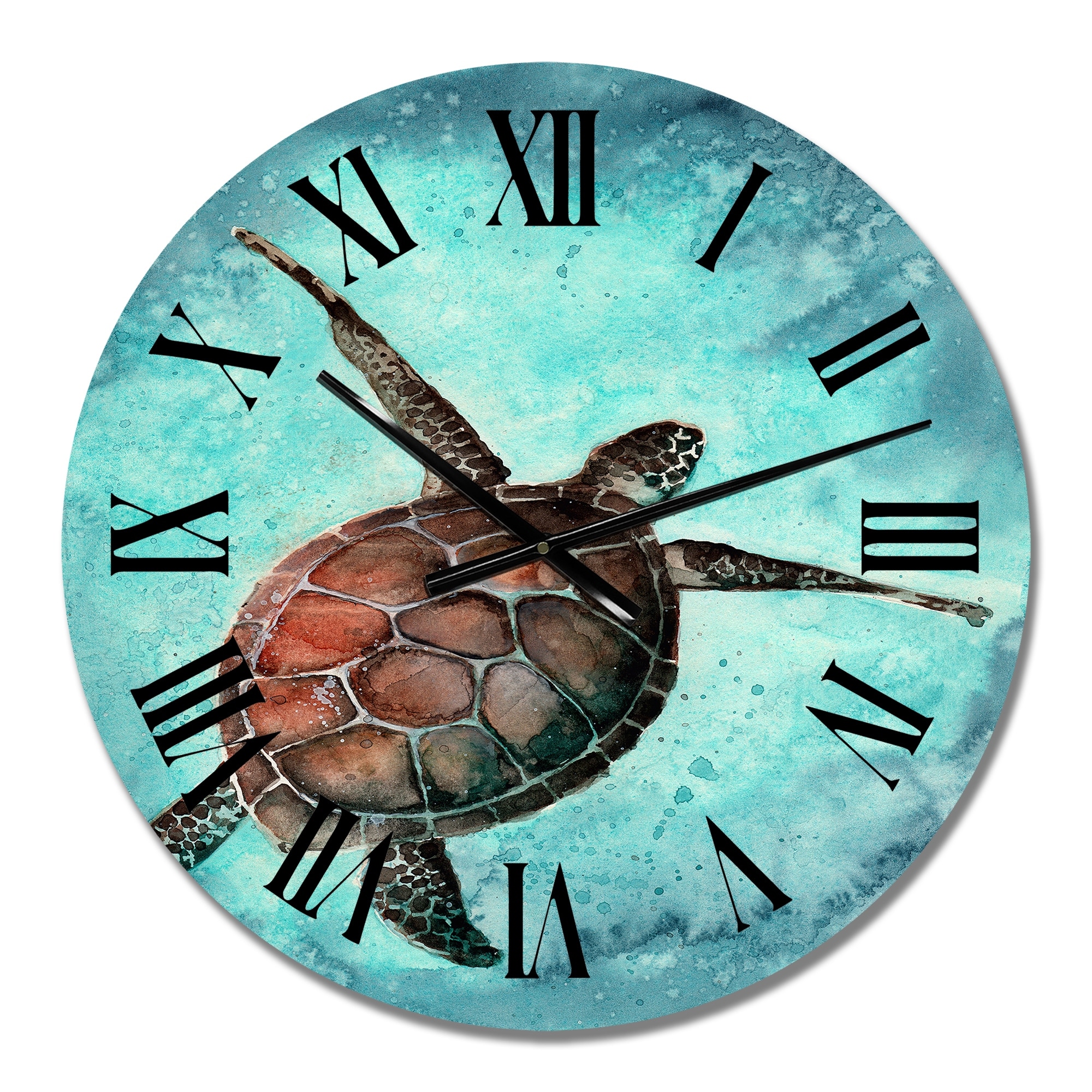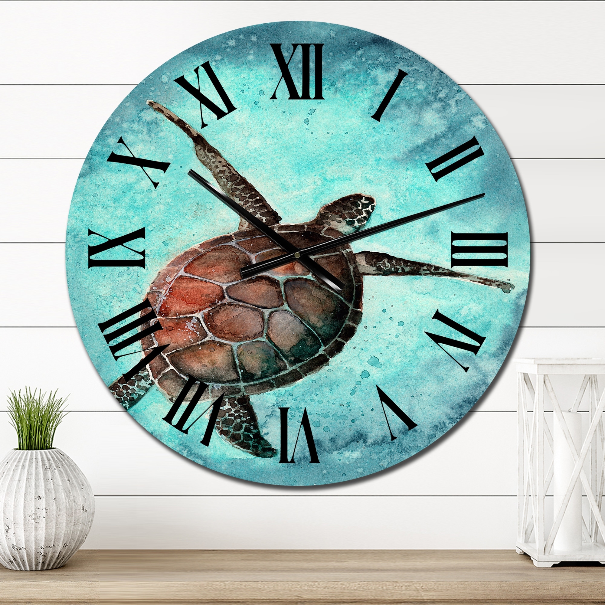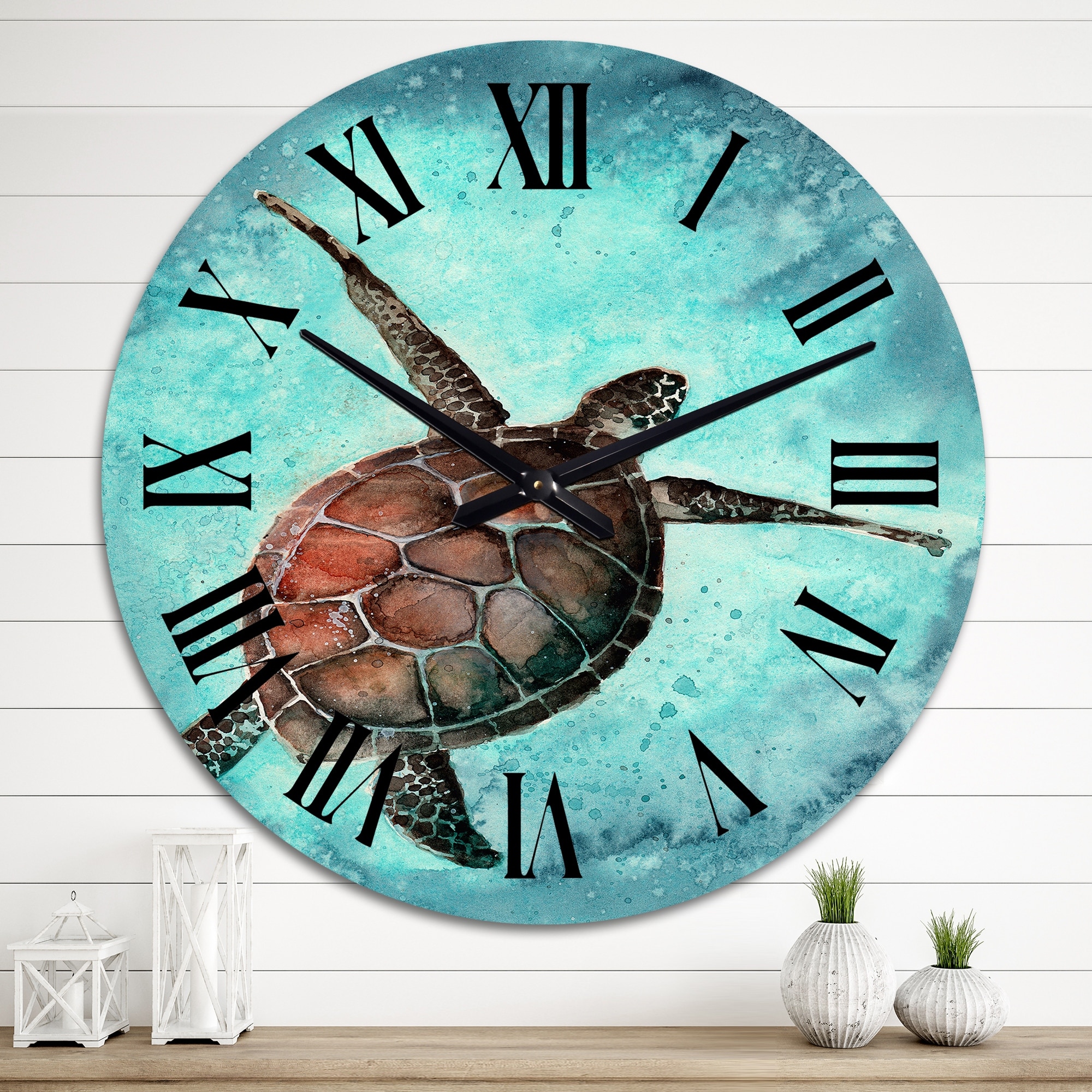 Designart 'Colorful Sea Turtle Swimming In The Ocean' Nautical & Coastal wall clock