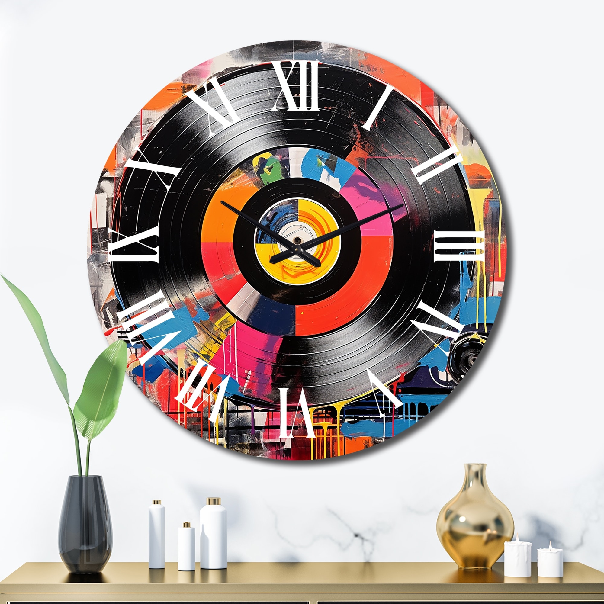 Designart "Colorful Retro Vinyl III" Music Oversized Wall Clock