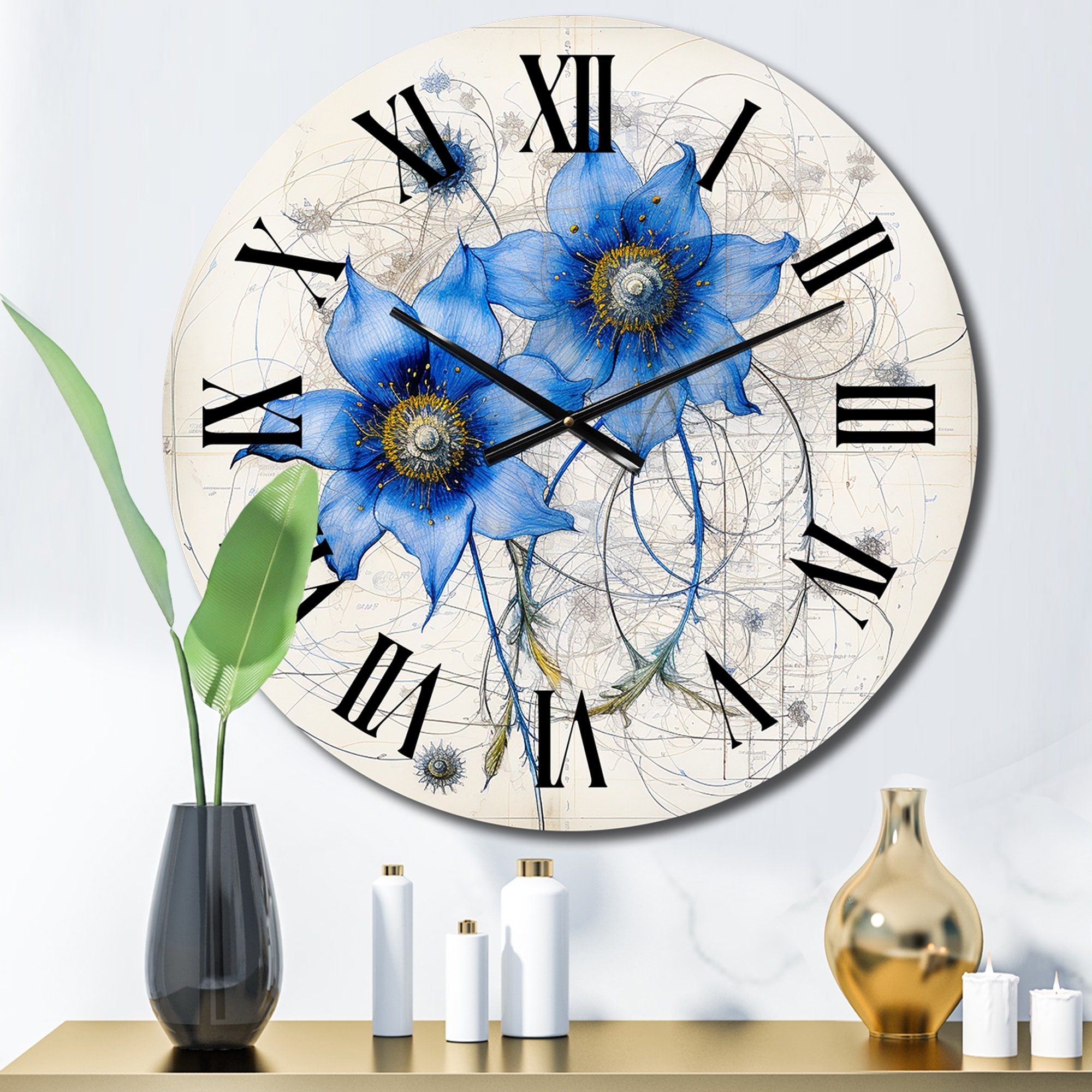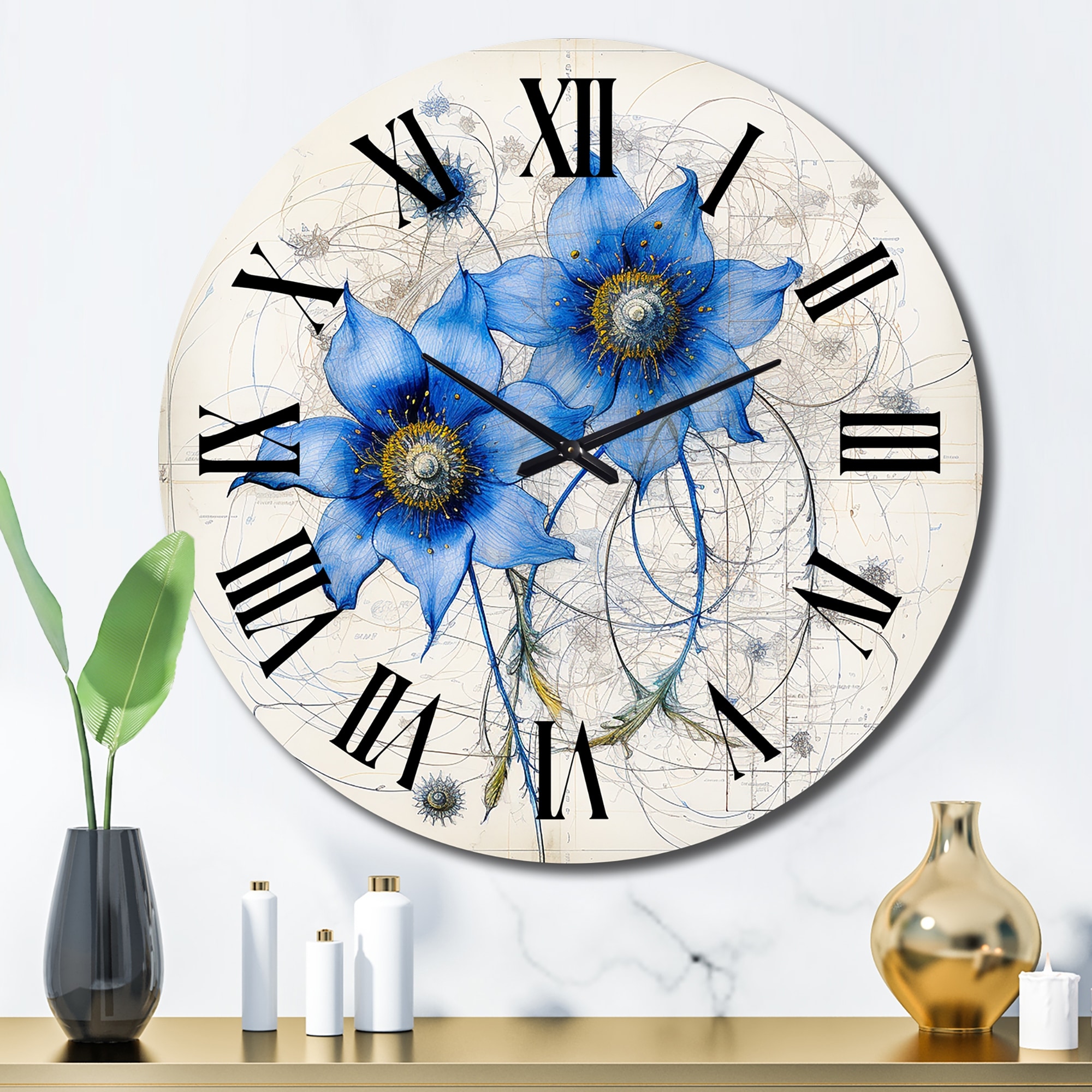 Designart "Vintage Illustration Of Blue Daisy Flower I" Daisy Oversized Wall Clock