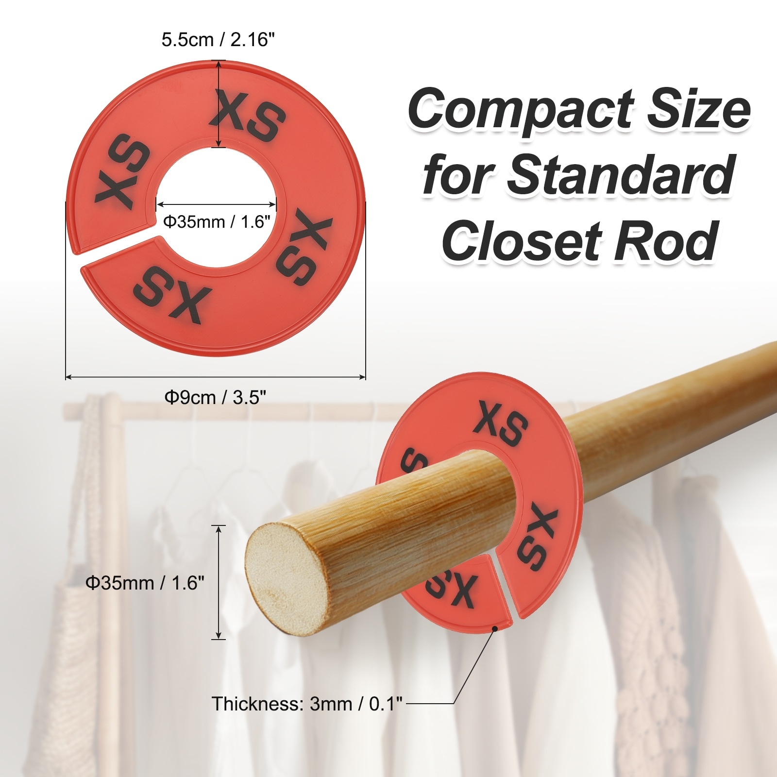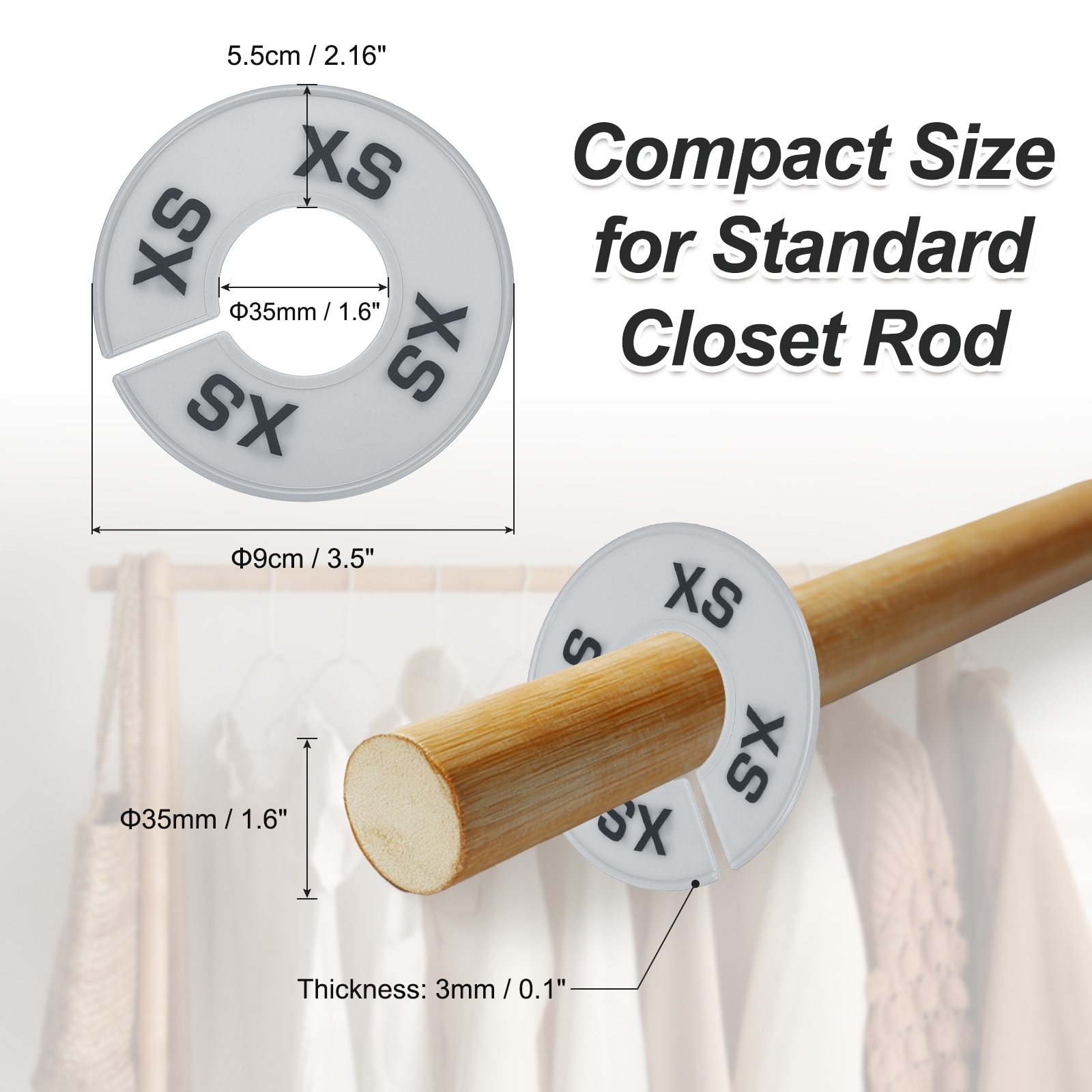 Round Clothes Dividers for Hanging Clothes, 40 Pack 8 Sizes