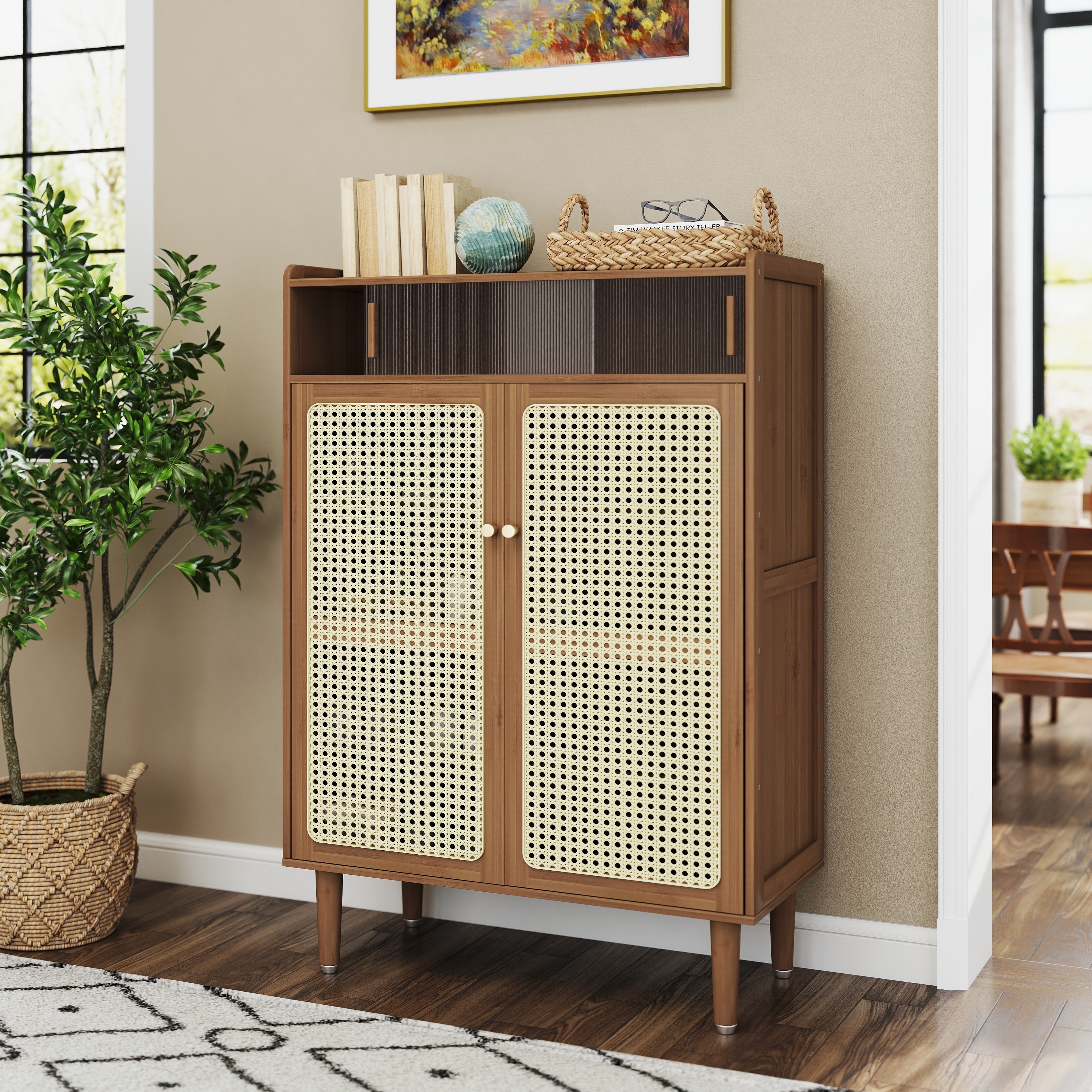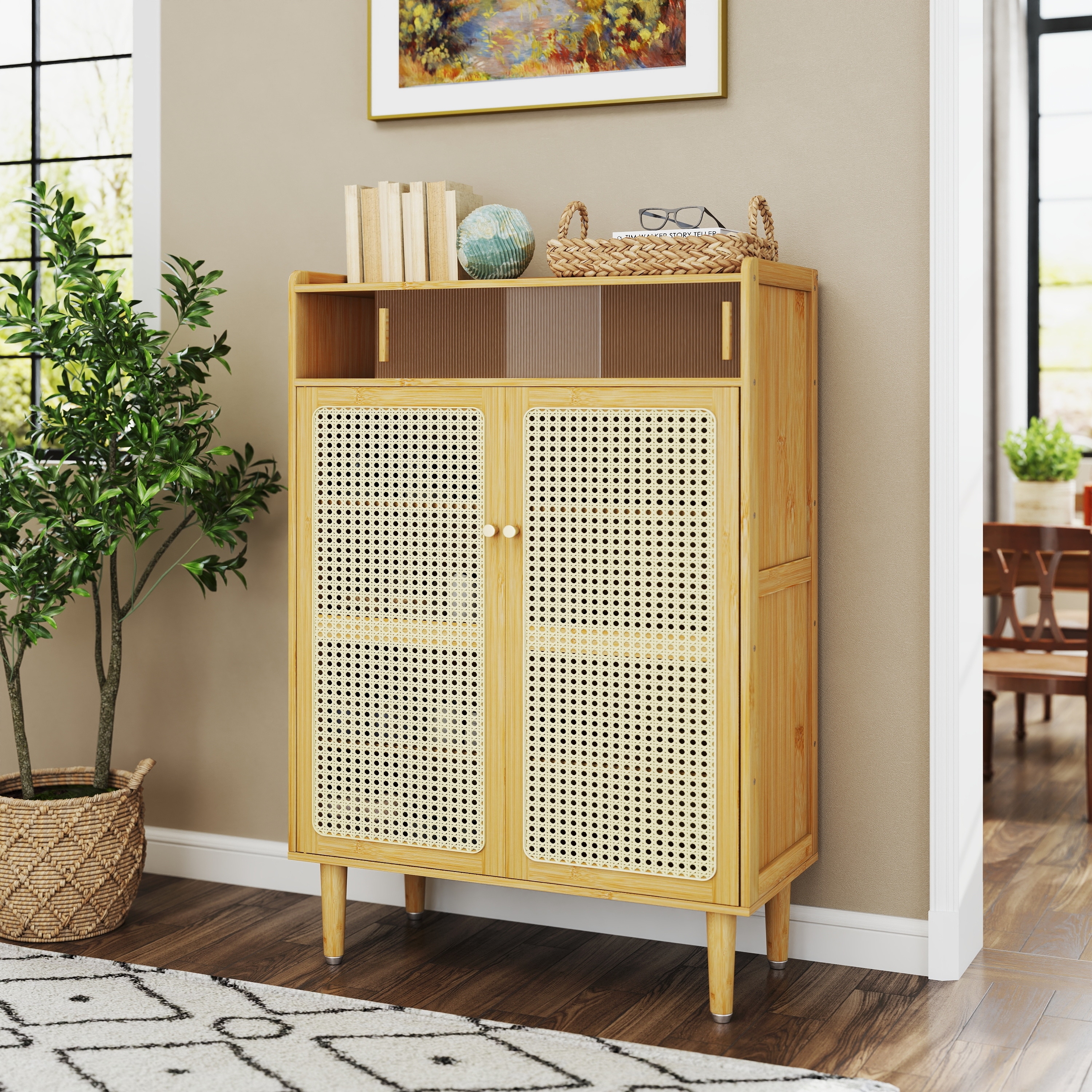 Rattan Shoe Cabinet, Entryway Shoe Storage Cabinet Organizer Rack