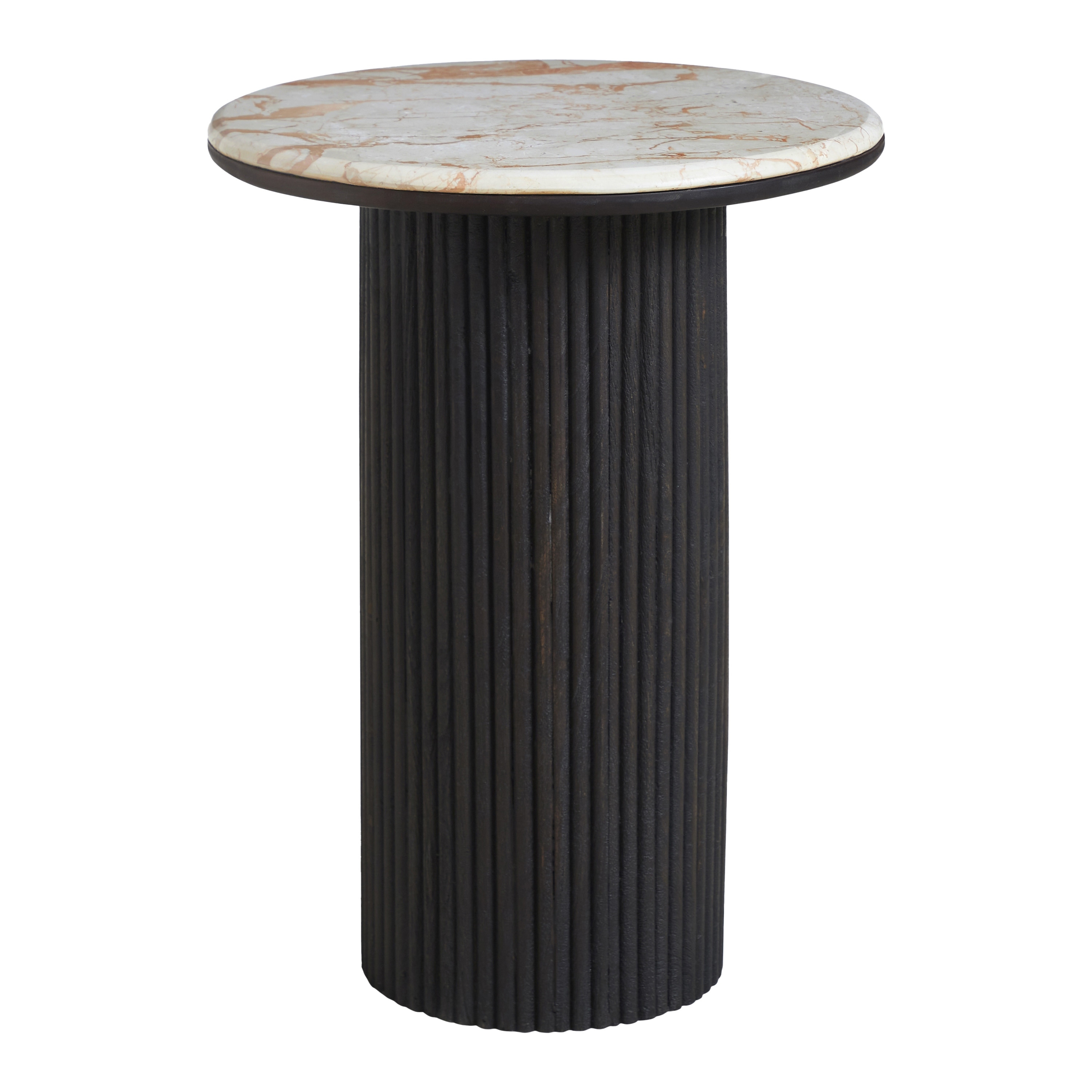 Renwil Alessio Indoor Breccia Marble Side Table, Walnut