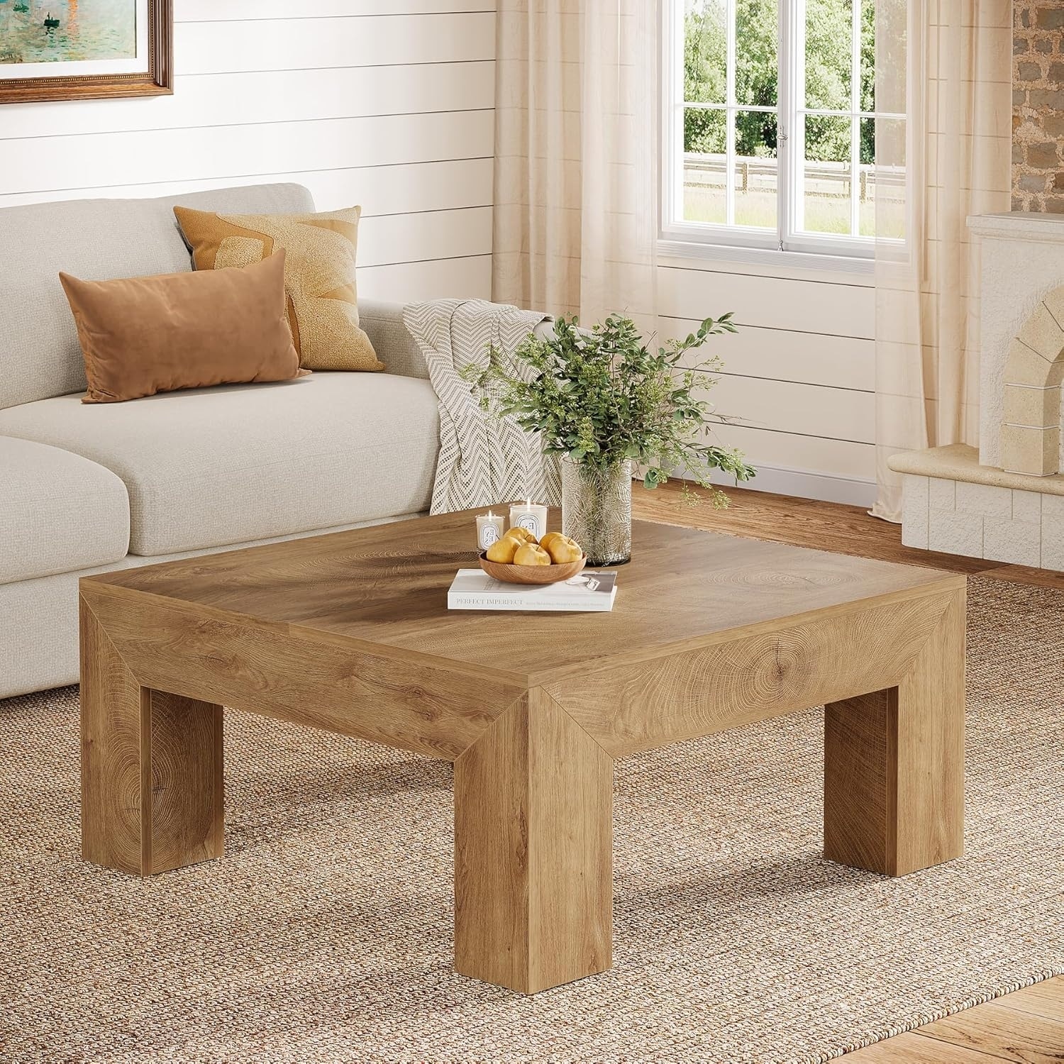 39.37-Inch Farmhouse Square Coffee Table for Living Room, Low Large Center Tea Accent Table