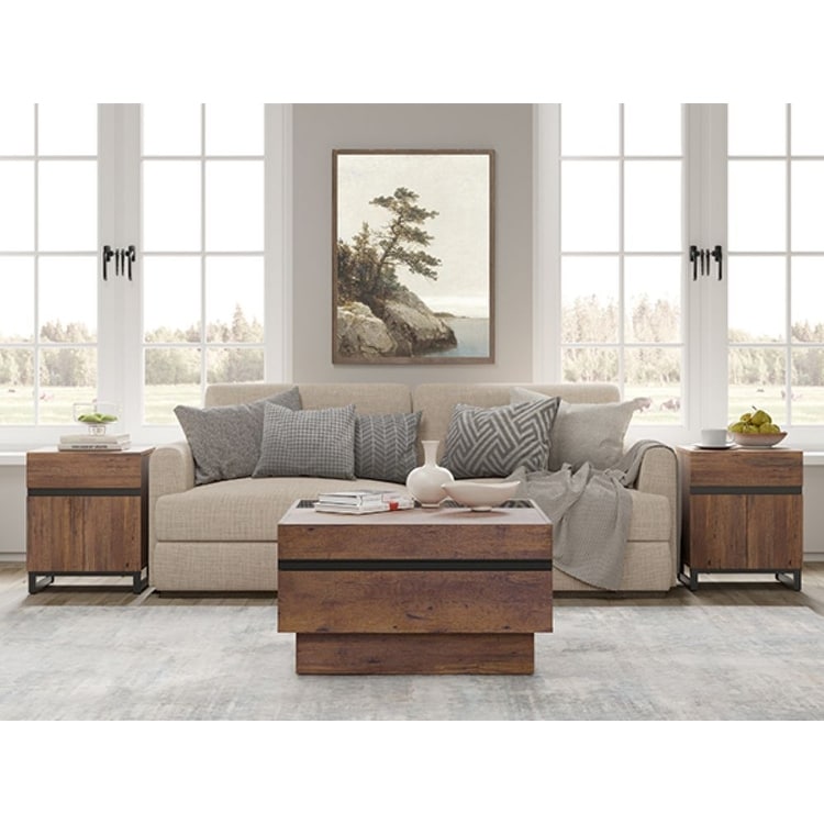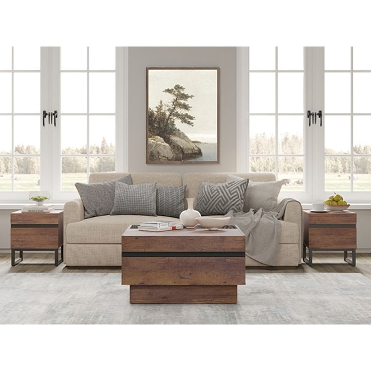 Wampat 3-Piece Living Room Table Set - 1 Square Storage Coffee Table & 2 Modern End Tables with Drawers, Rustic Brown