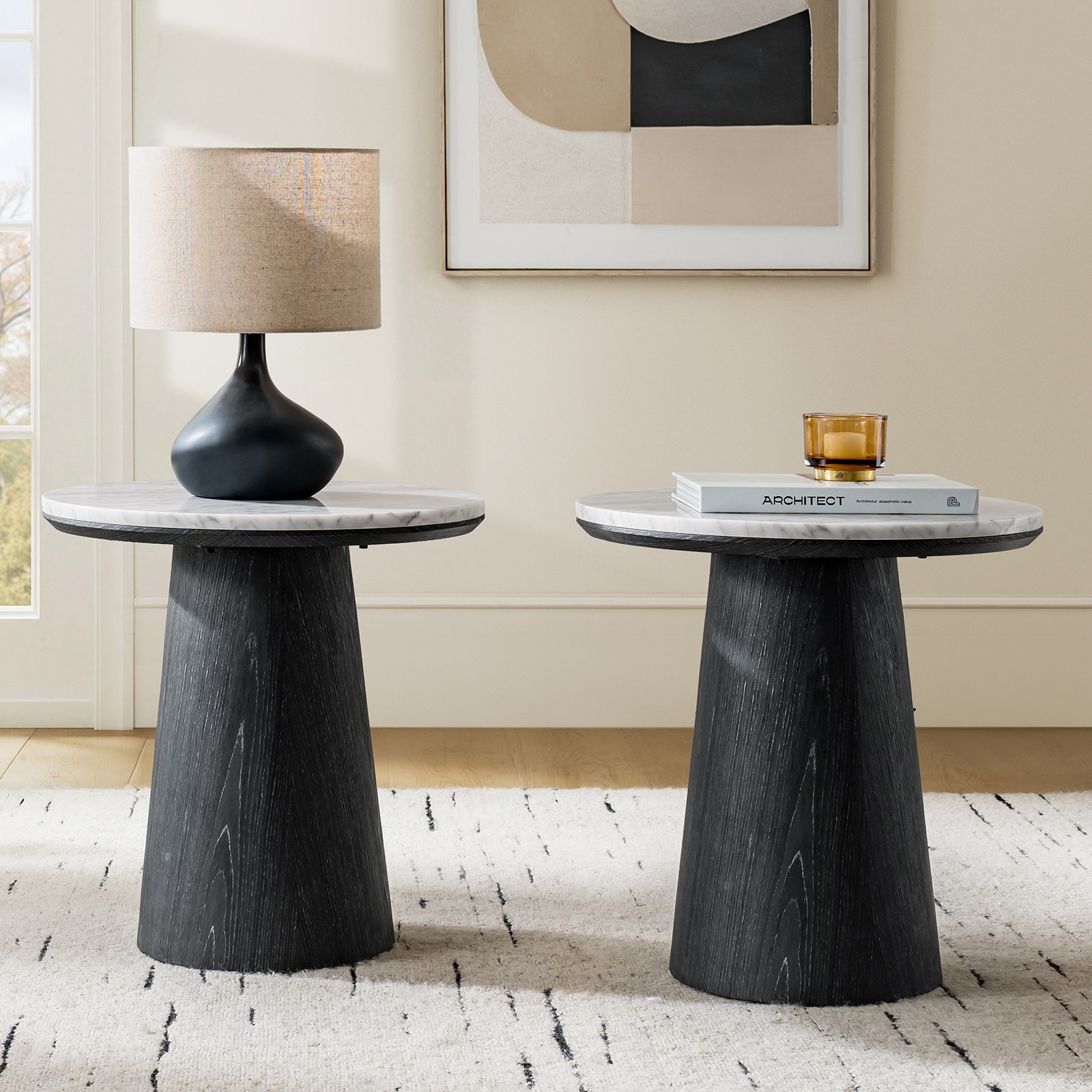 Fitzgerald Modern Round End Table with Genuine Marble Top and Easy Assembly Set of 2 by HULALA HOME