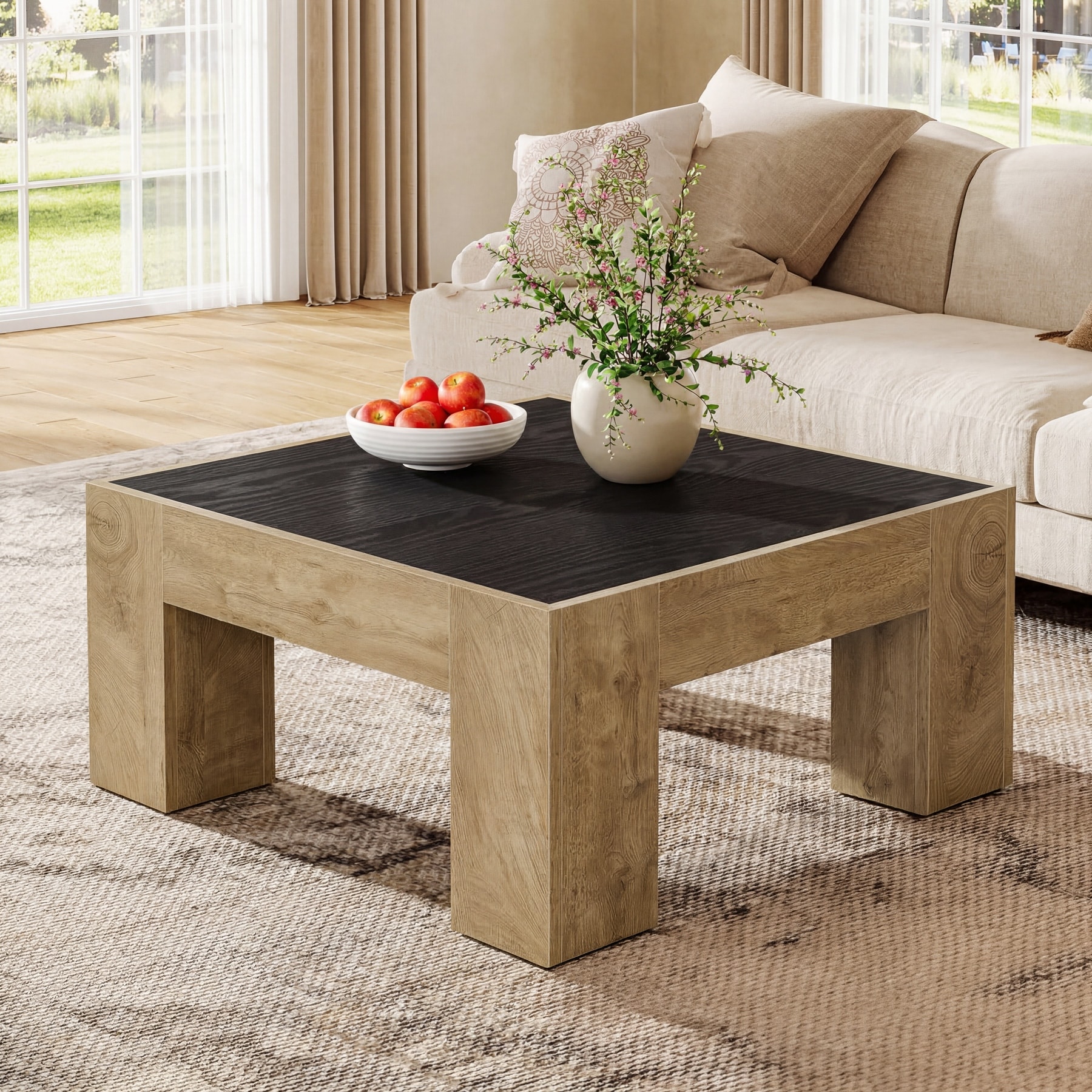 Square Coffee Tables for Living Room, 31.5" Small Farmhouse Center Table - 31.5" W x 31.5" D x 17.7" H