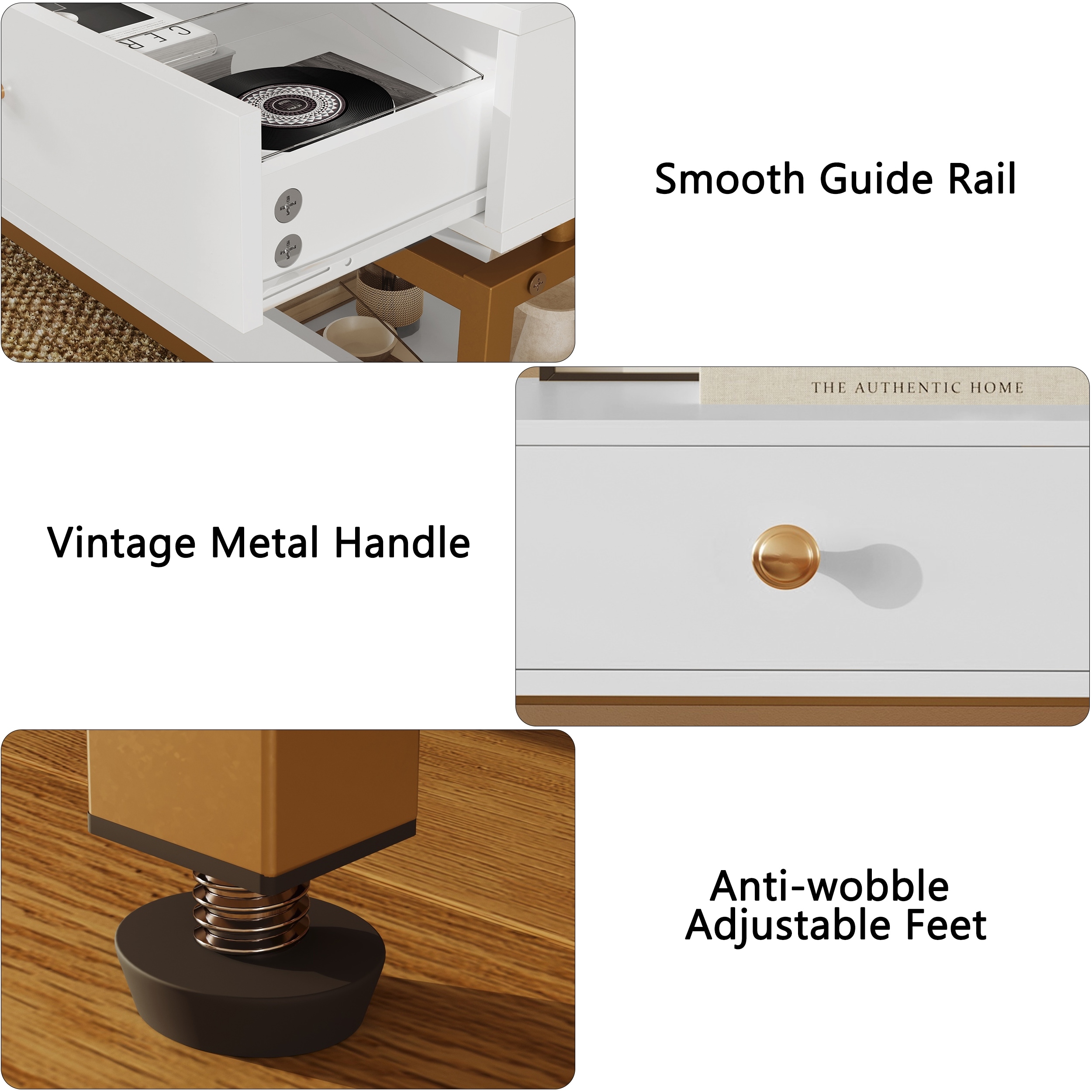 42.5" Marble Console Table with Gold Metal Legs, Elegant Traditional Design, 2 Drawers, and Assembly Required