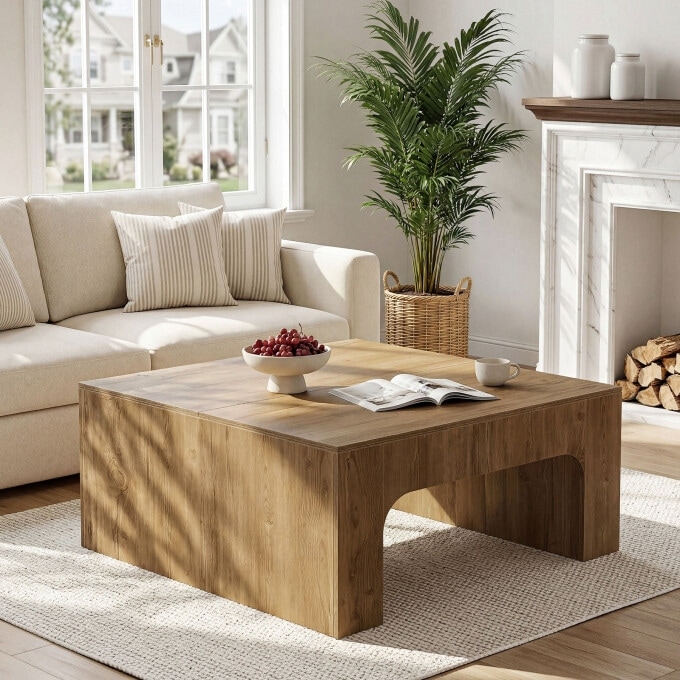 39.37" Square Coffee Table, Wooden Living Room Center Table