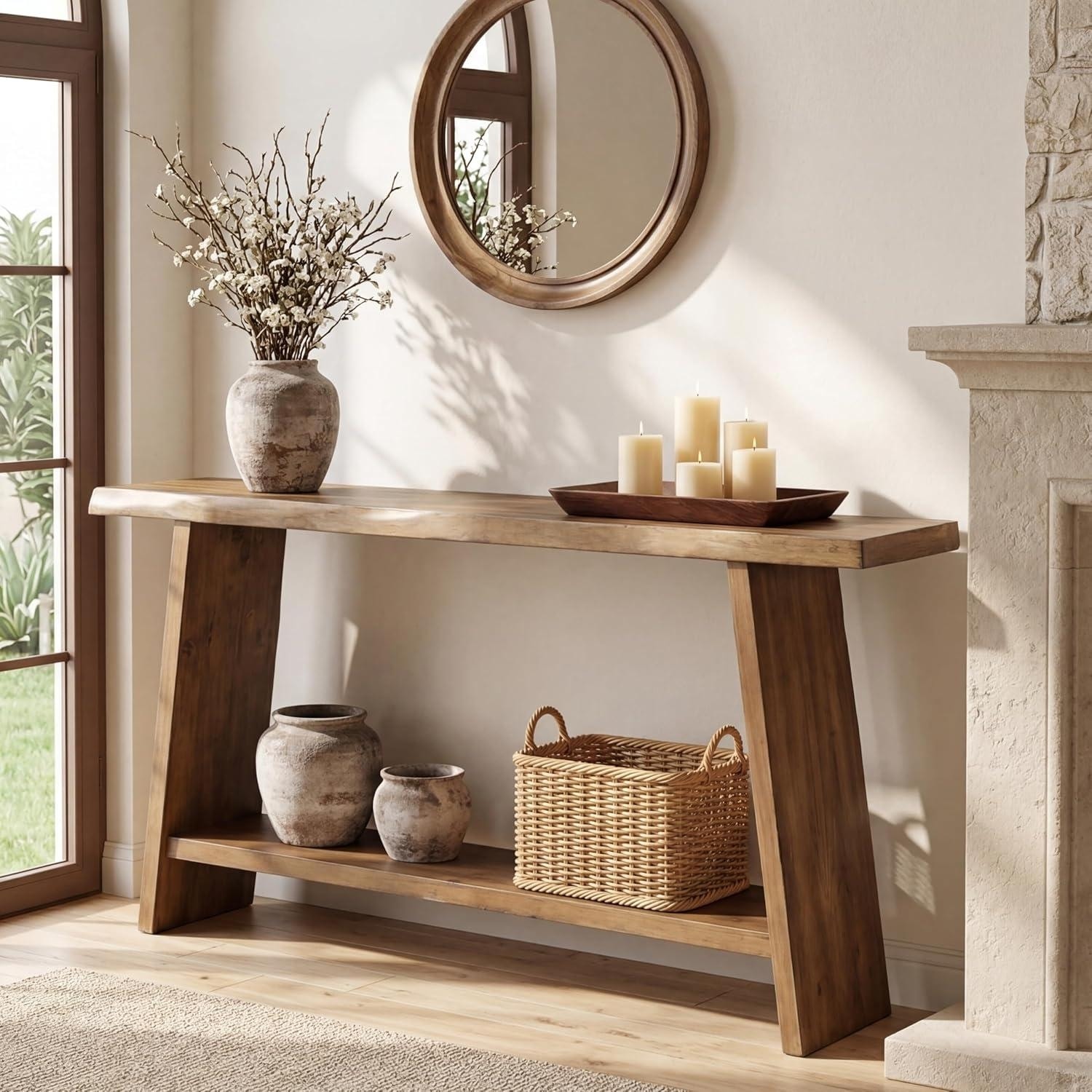 Console Table with Storage Shelf, 62.99" Solid Wood Entryway Table