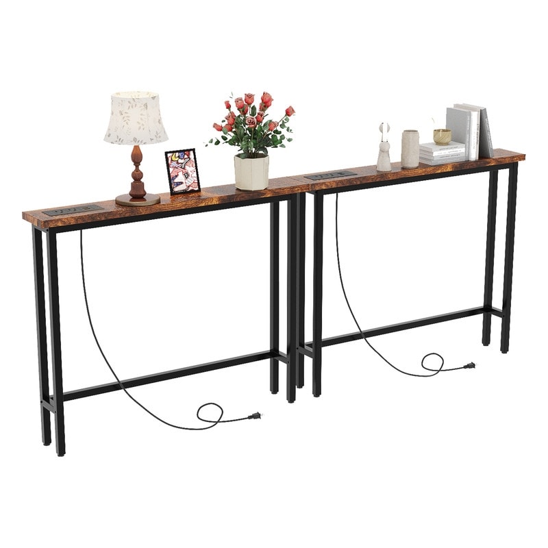 Console Table with 2 Outlet and 2 USB Ports Entryway Table Narrow Charging Station Sofa Table