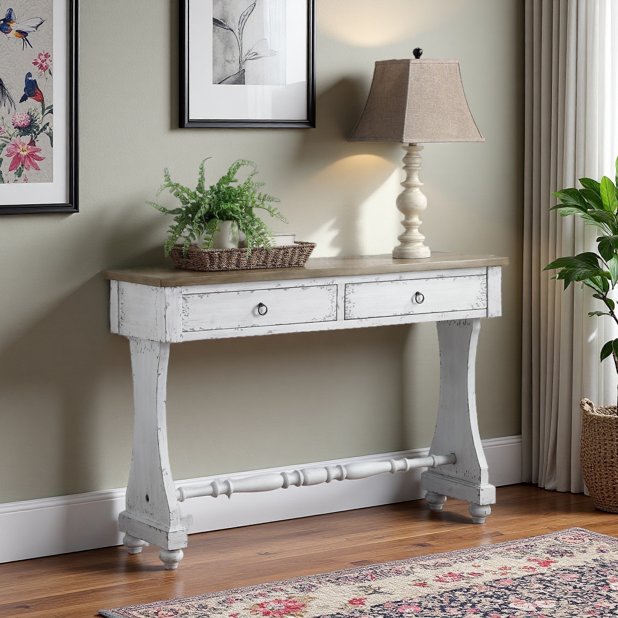 30-Inch Farmhouse Sofa Table with Pedestal Legs, Rustic Entryway Console for Living Room