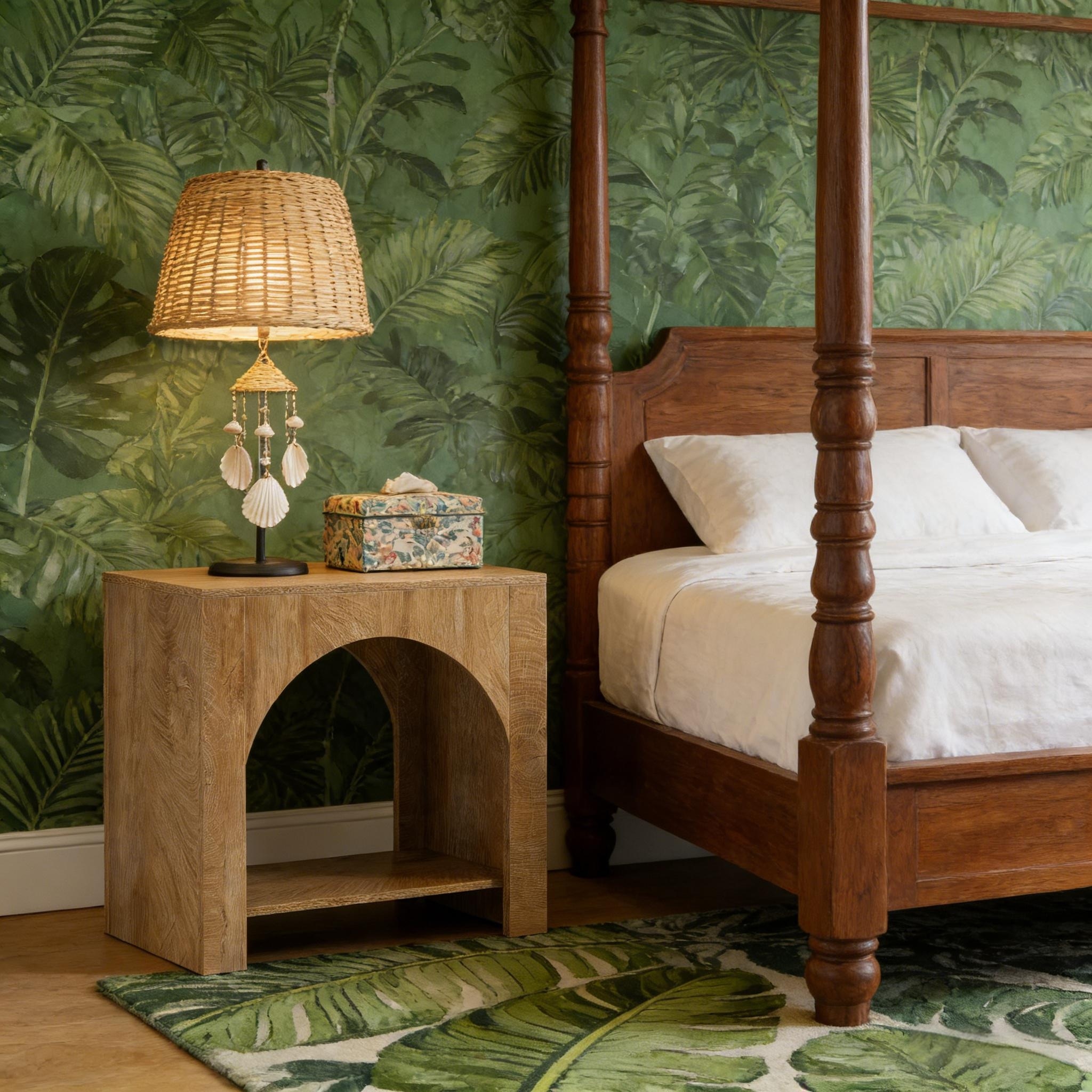 Wood End Table with Storage, Walnut Nightstands for Living Room, Bedroom
