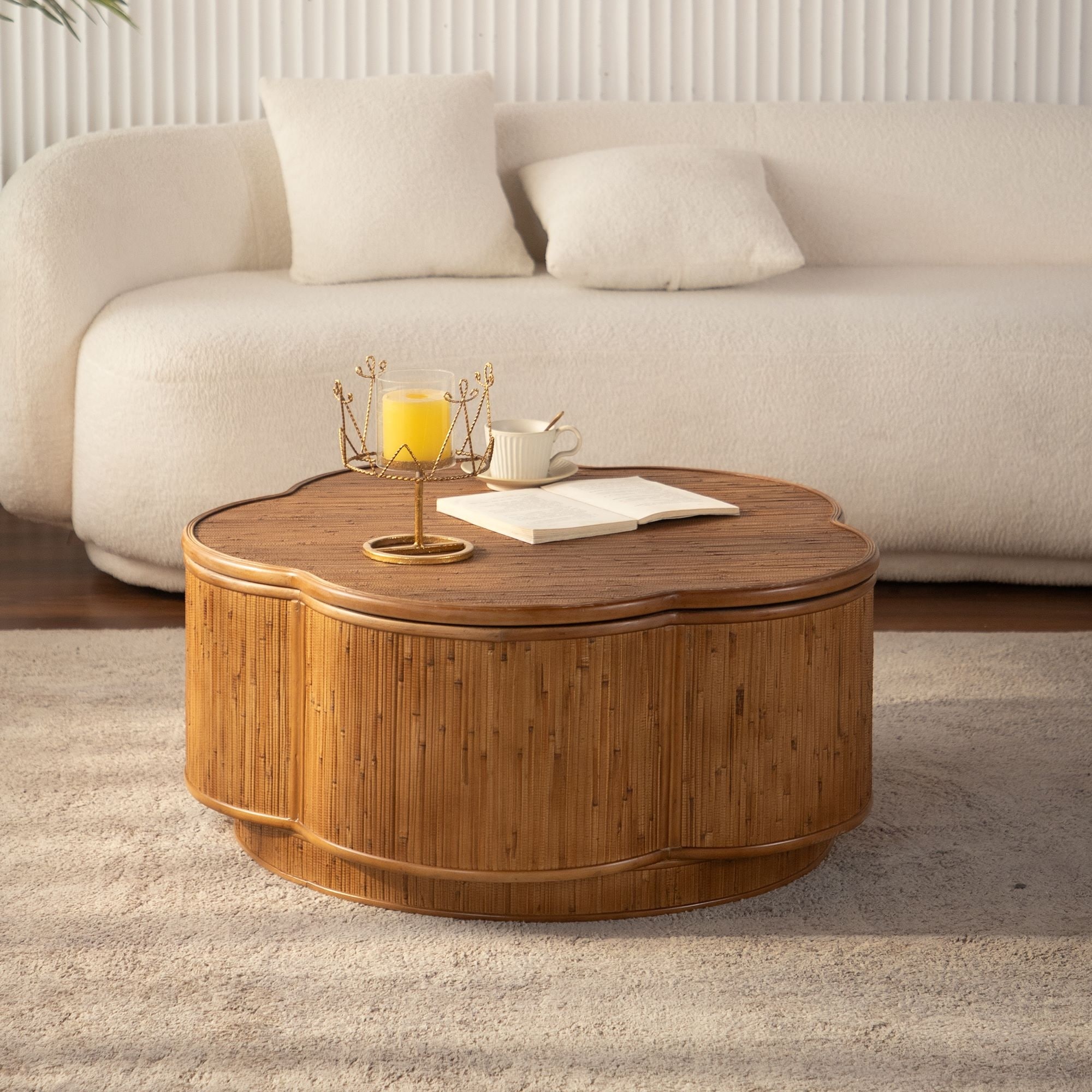 Flower-Shaped Rattan Coffee Table with Hidden Storage