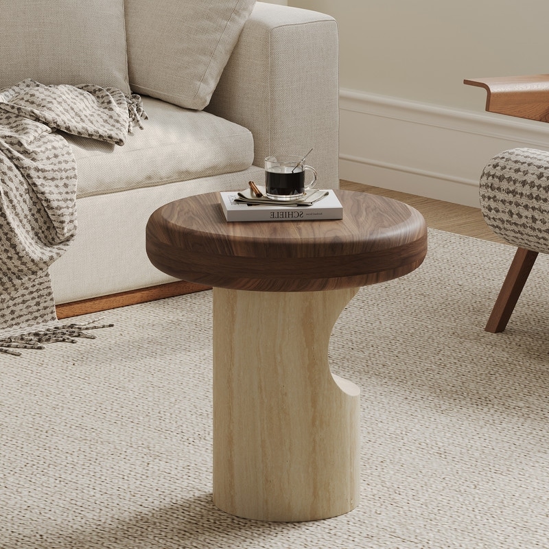 19.7" Round Dual-Wood Coffee Table, Walnut & Light Wood Mid-Century Modern Center Table for Living Room