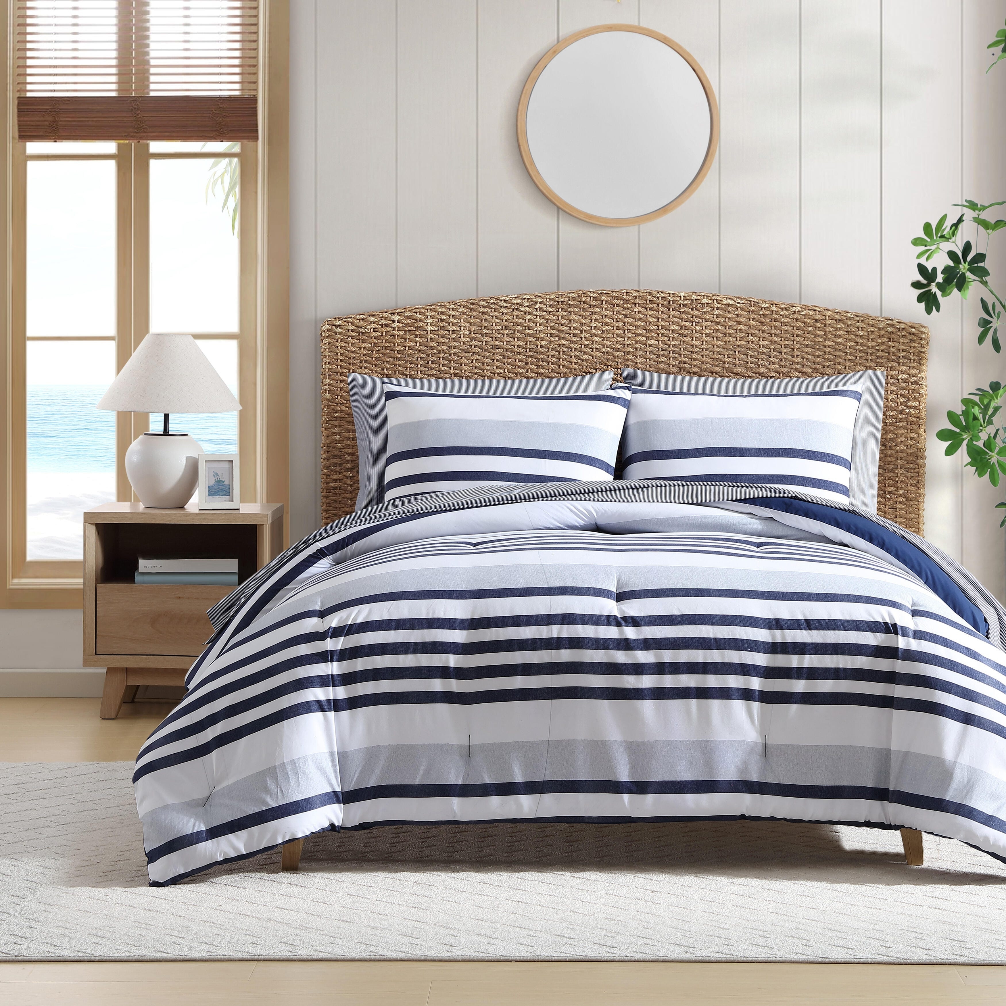 Nautica Palm Coast Stripe Reversible Blue Comforter Bonus Set