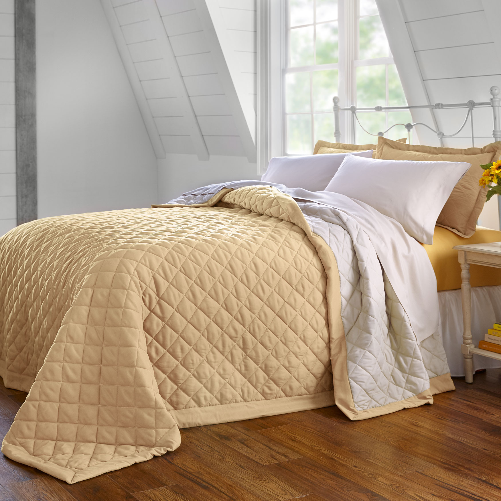 BH Studio Reversible Quilted Bedspread by BH Studio in Taupe Ivory (Size TWIN)