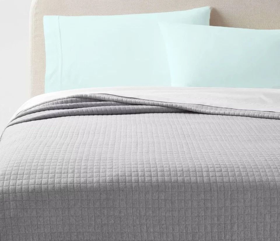 Soft Full Queen Jersey Quilt, Heather Gray, Cozy Polyester Fill, Machine Washable Threshold Soft Full Queen Jersey Quilt, Heather Gray, Cozy Polyester Fill, Machine Washable Threshold