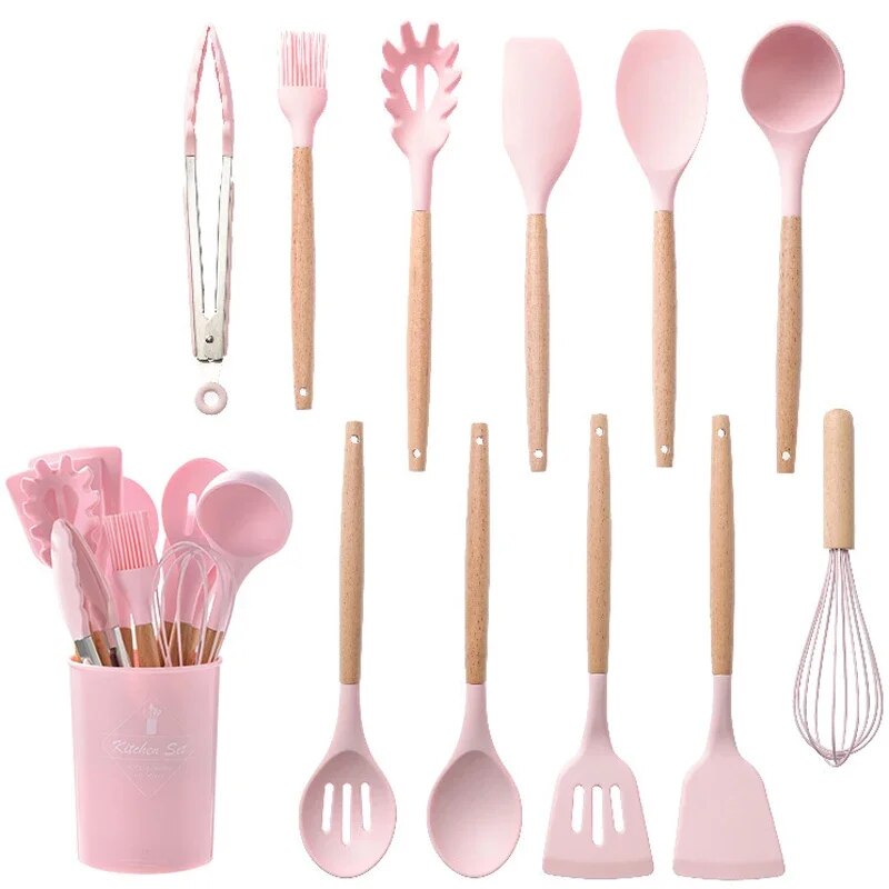 12 Piece Silicone Kitchen Utensils Set With Wooden Handles Non Stick Cookware, Spatula, Egg Beaters, Kitchenware Acces 5
