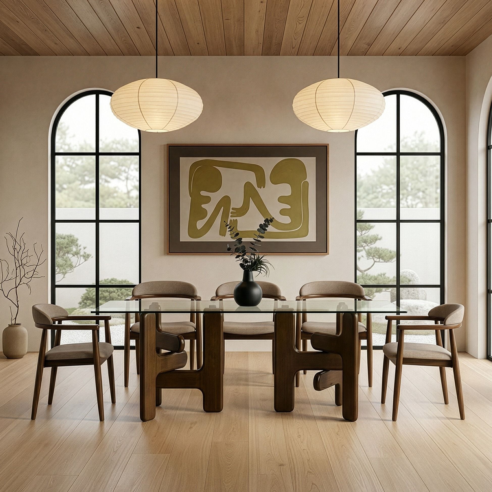 Velshi Modern Glass & Walnut Rectangular Dining Table