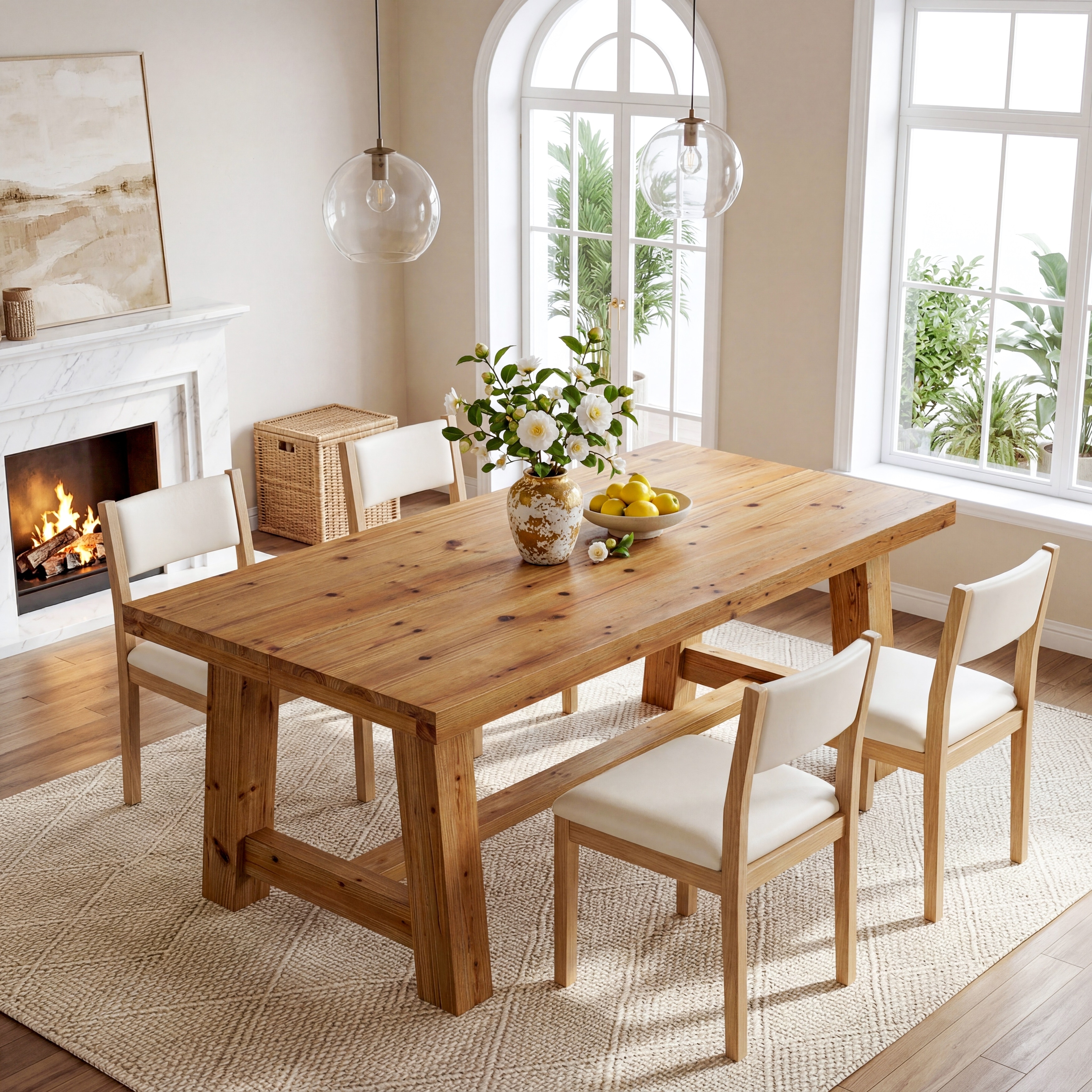 63-Inch Solid Wood Dining Table, Kitchen Table for 4-6 People, Rectangular Dinner Table