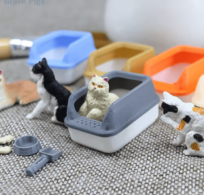 Mini 1 12 Dollhouse Cat Litter Box Set With Shovel Realistic DIY Pet Accessory Kit orange