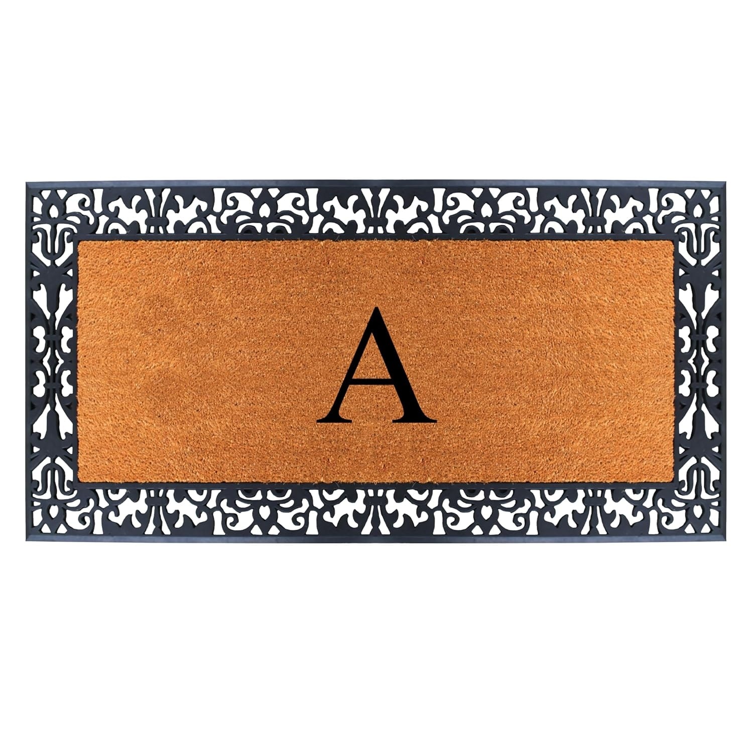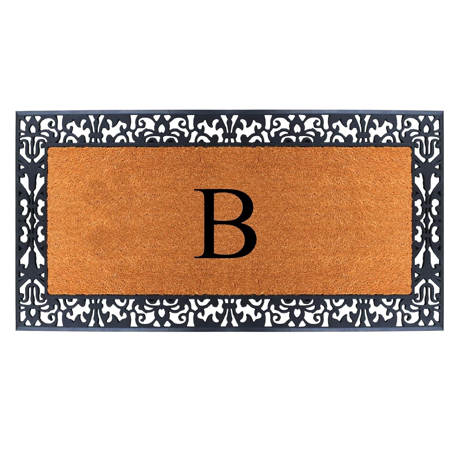A1HC Rubber and Coir Paisley Border Heavy Duty Non-Slip Durable Double Door Monogrammed Doormat 30"X60", Black