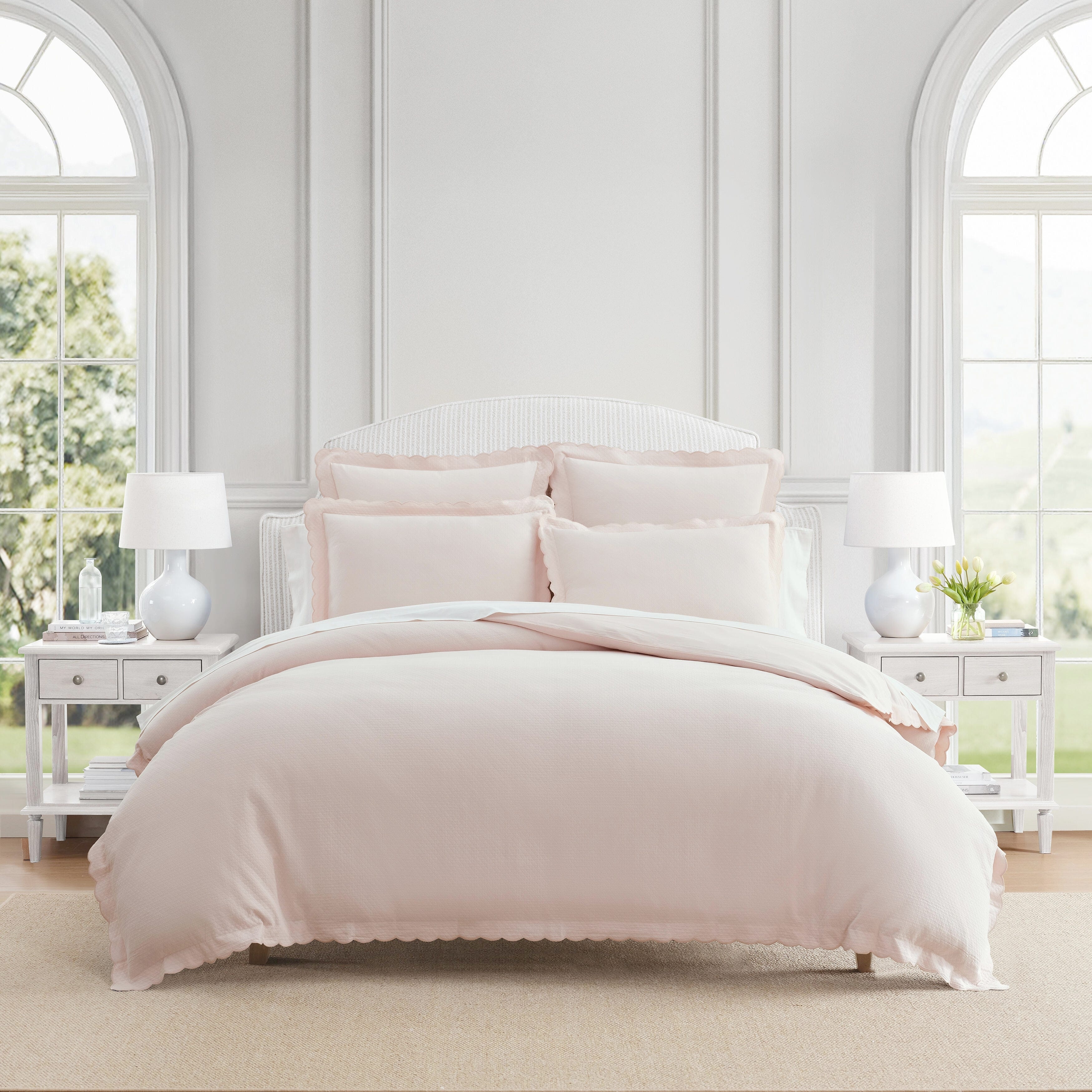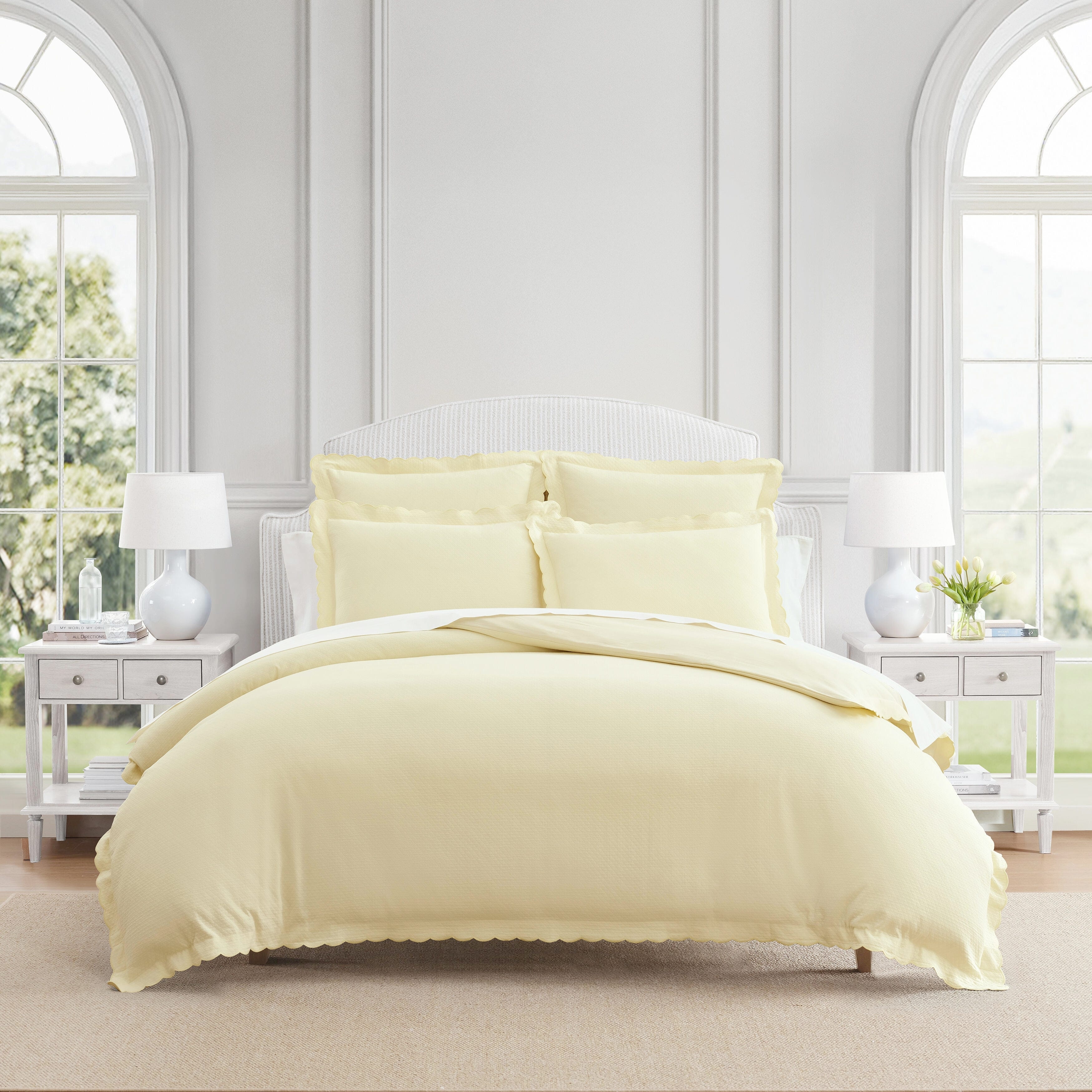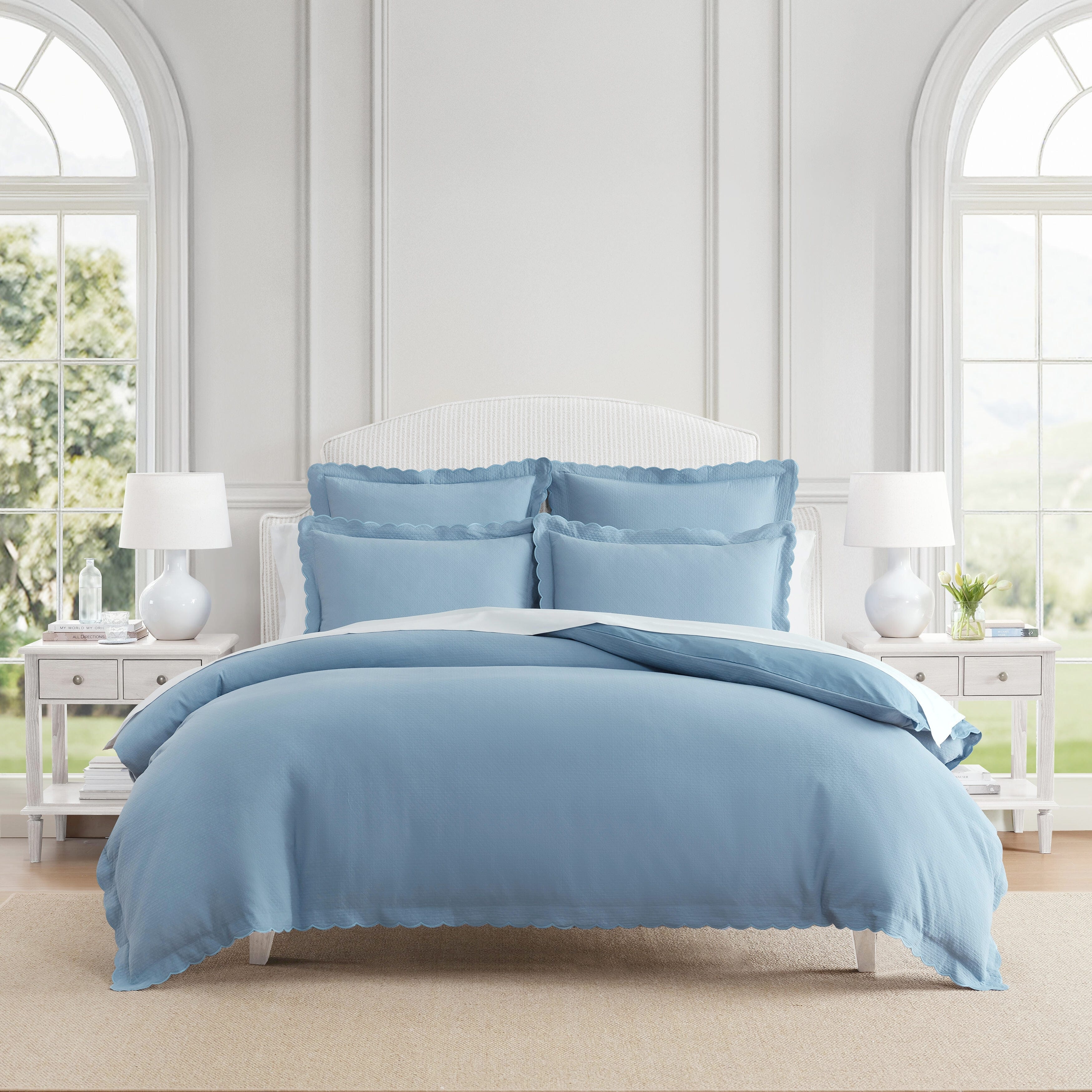 Embroidered Percale Crisp Cotton Double Scallopier Duvet Set and Sham
