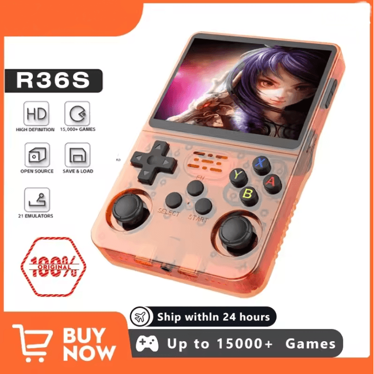 R36S Handheld Retro Game Console 3.5inch IPS Screen, 64G Linux Open Source Portable Video Player white 128g