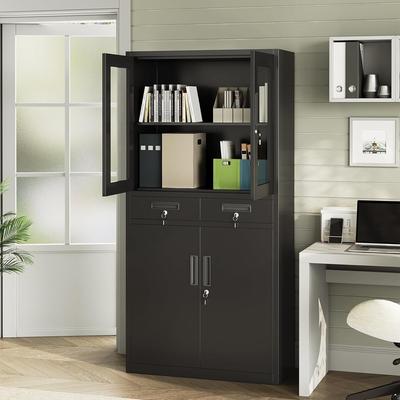71" Black Metal Storage Cabinet with Glass Doors for Workshop, Office - N/A