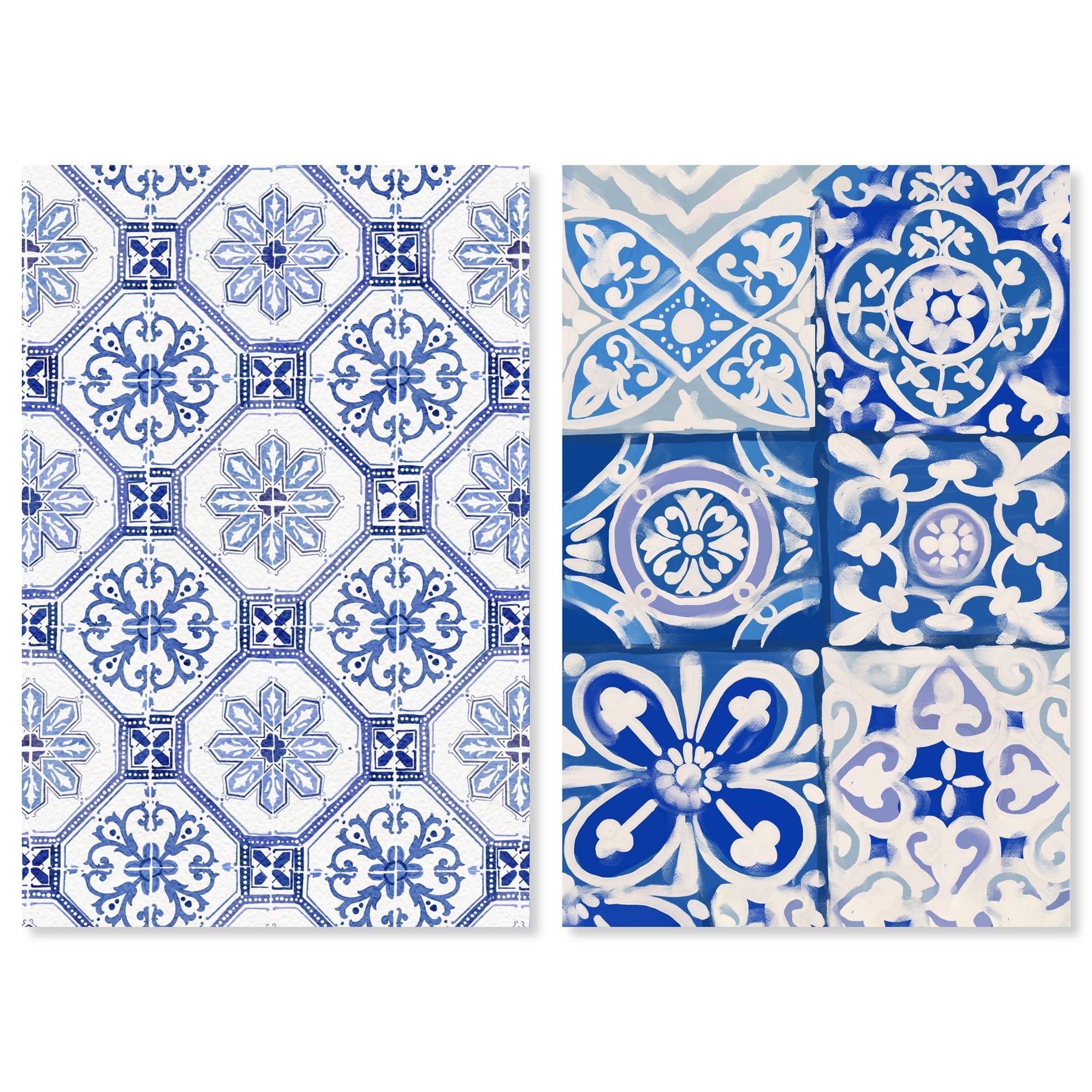 Mediterranean Floral Tiles Abstract Set Canvas Print by Art Remedy