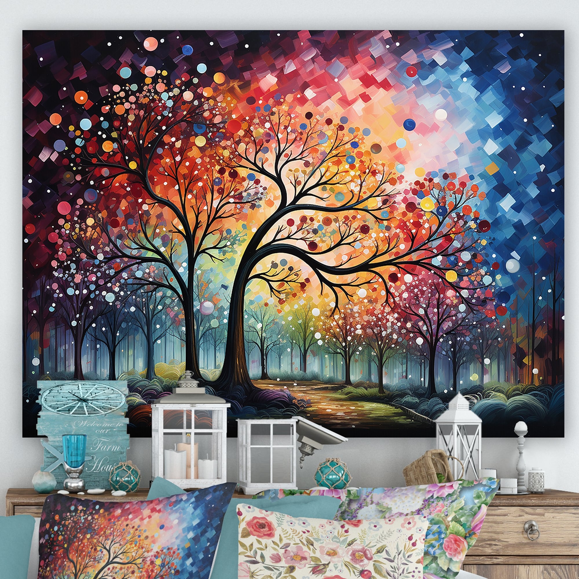 Designart "Multicolor Graffiti Oak Tree Sunrise" Tree Oak Wall Art