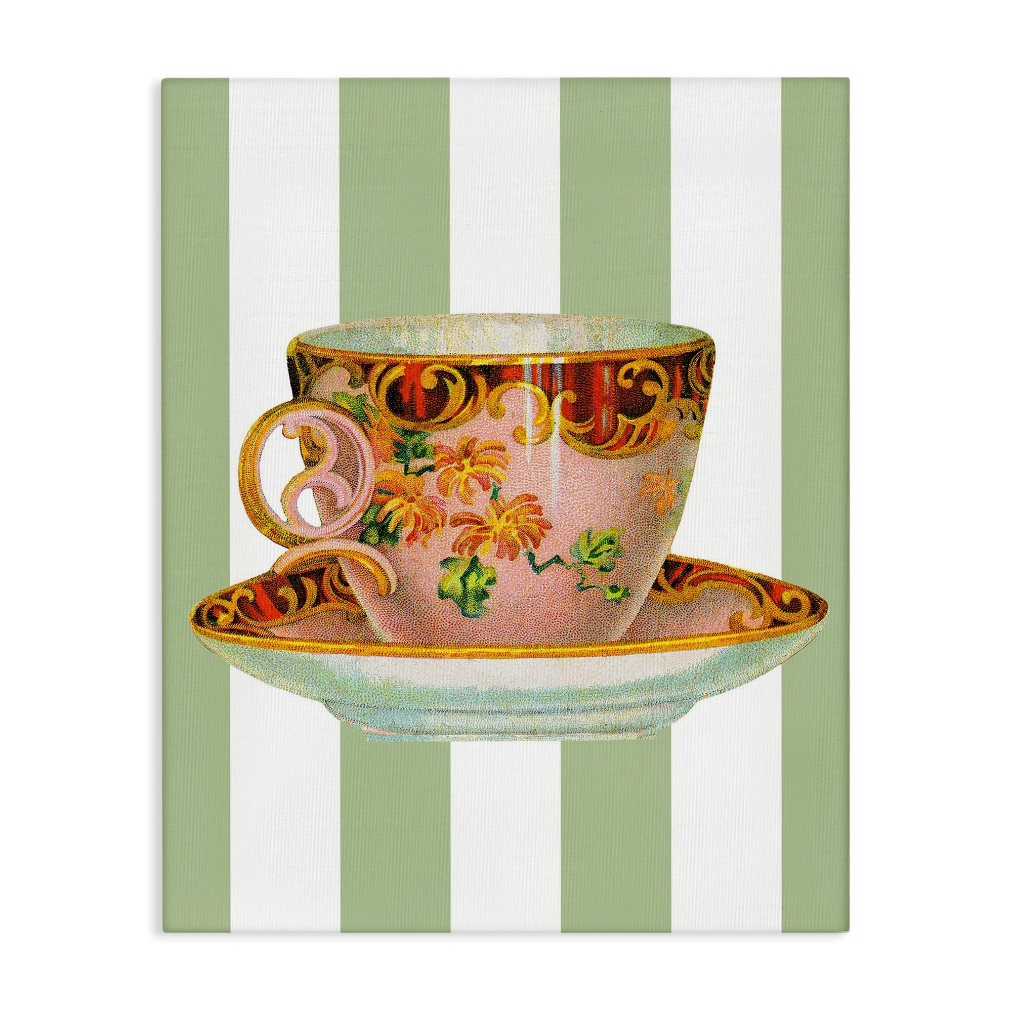 Stupell Elegant Teacup on Green Stripes Canvas Wall Art Design By Lil' Rue