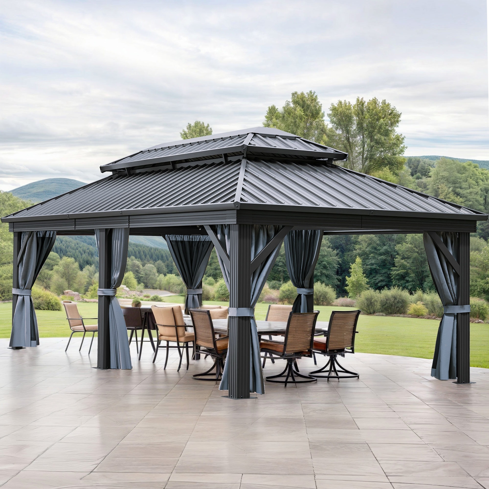 Outdoor Gazebo with Galvanized Steel Double Roof,14x22Ft,Hardtop Gazebo,Aluminum Frame