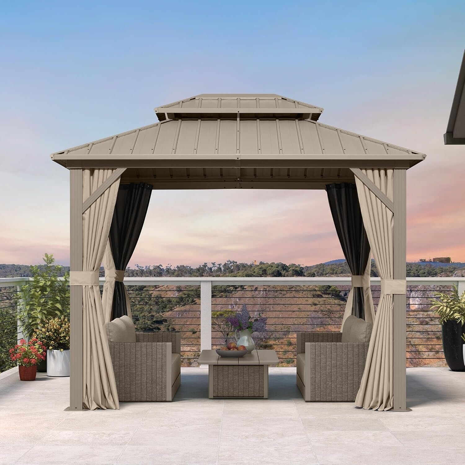 PURPLE LEAF Outdoor Galvanized Steel Hardtop Gazebo, Aluminum Frame Gazebo With Curtains