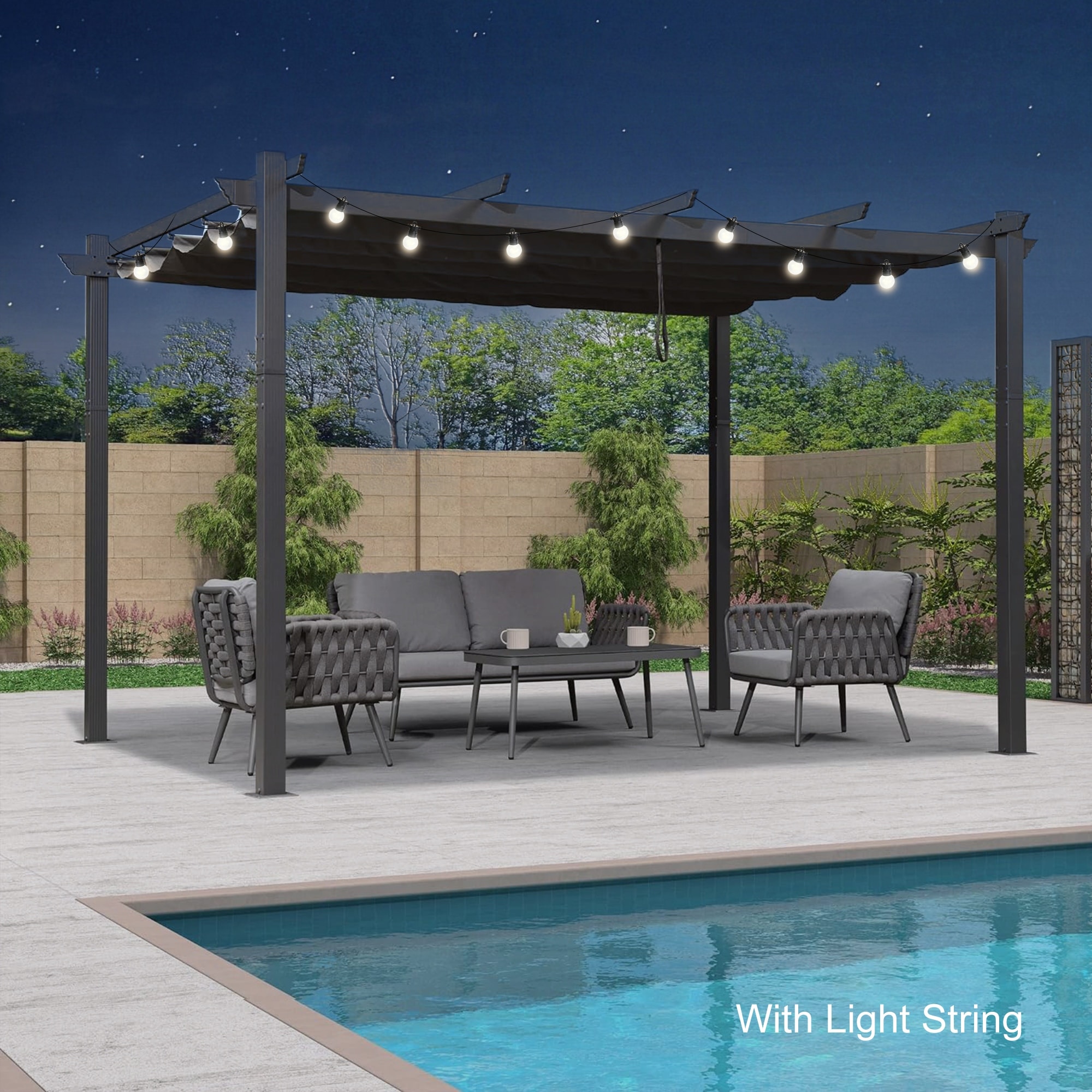PURPLE LEAF Gazebo Outdoor Retractable Modern Large Size Pergola w Lights