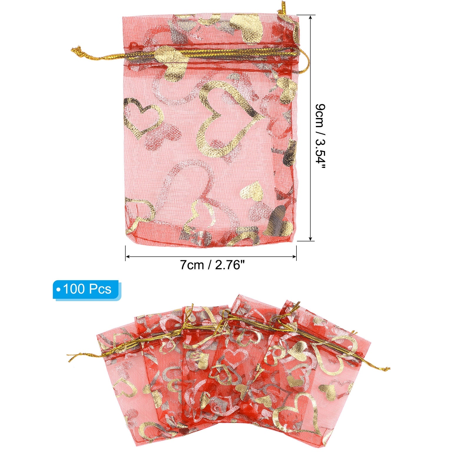 Heart Printed Organza Bags, Mini Pouches