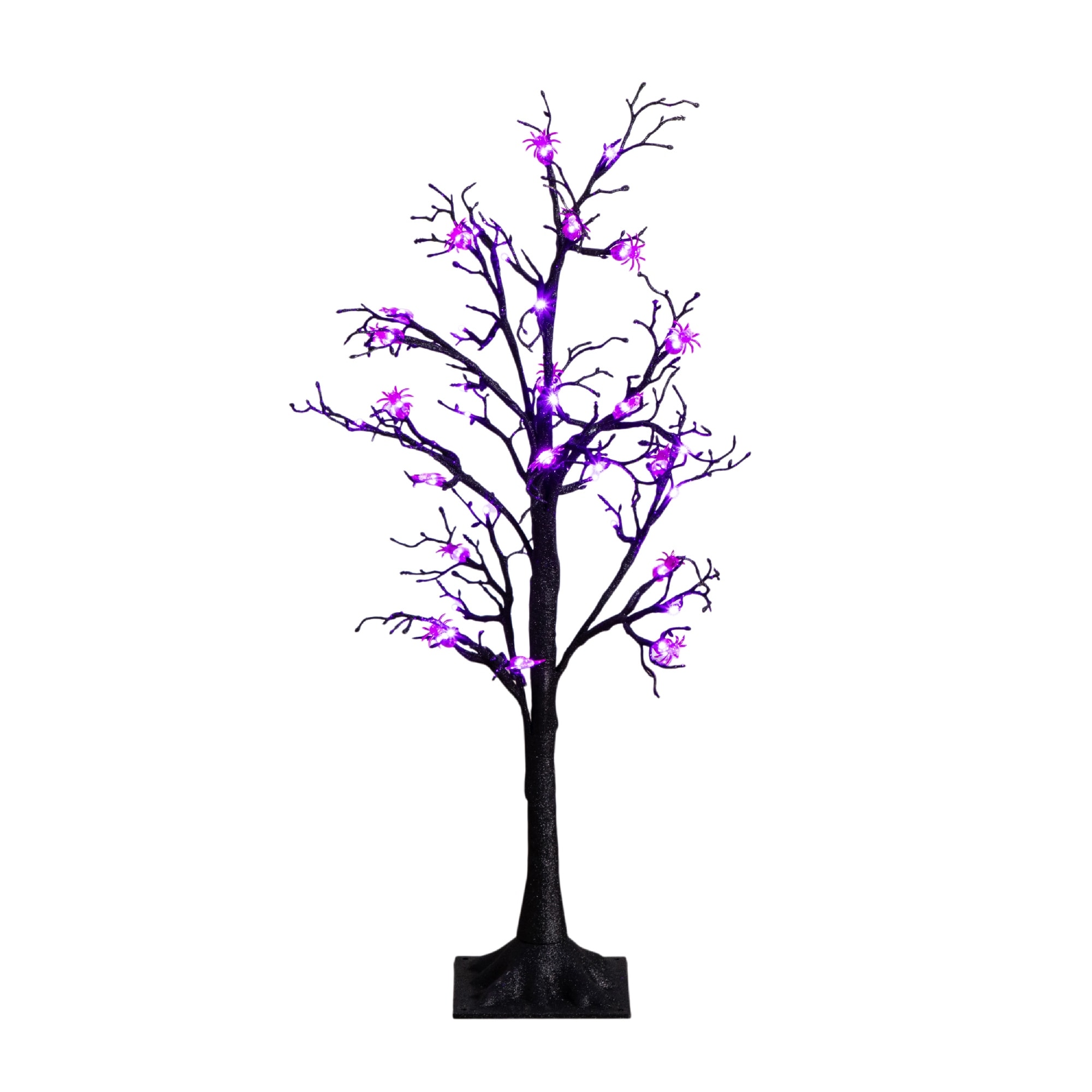 3-ft Pre-Lit Artificial Halloween Spider Twig Tree with 36 Lights - Black
