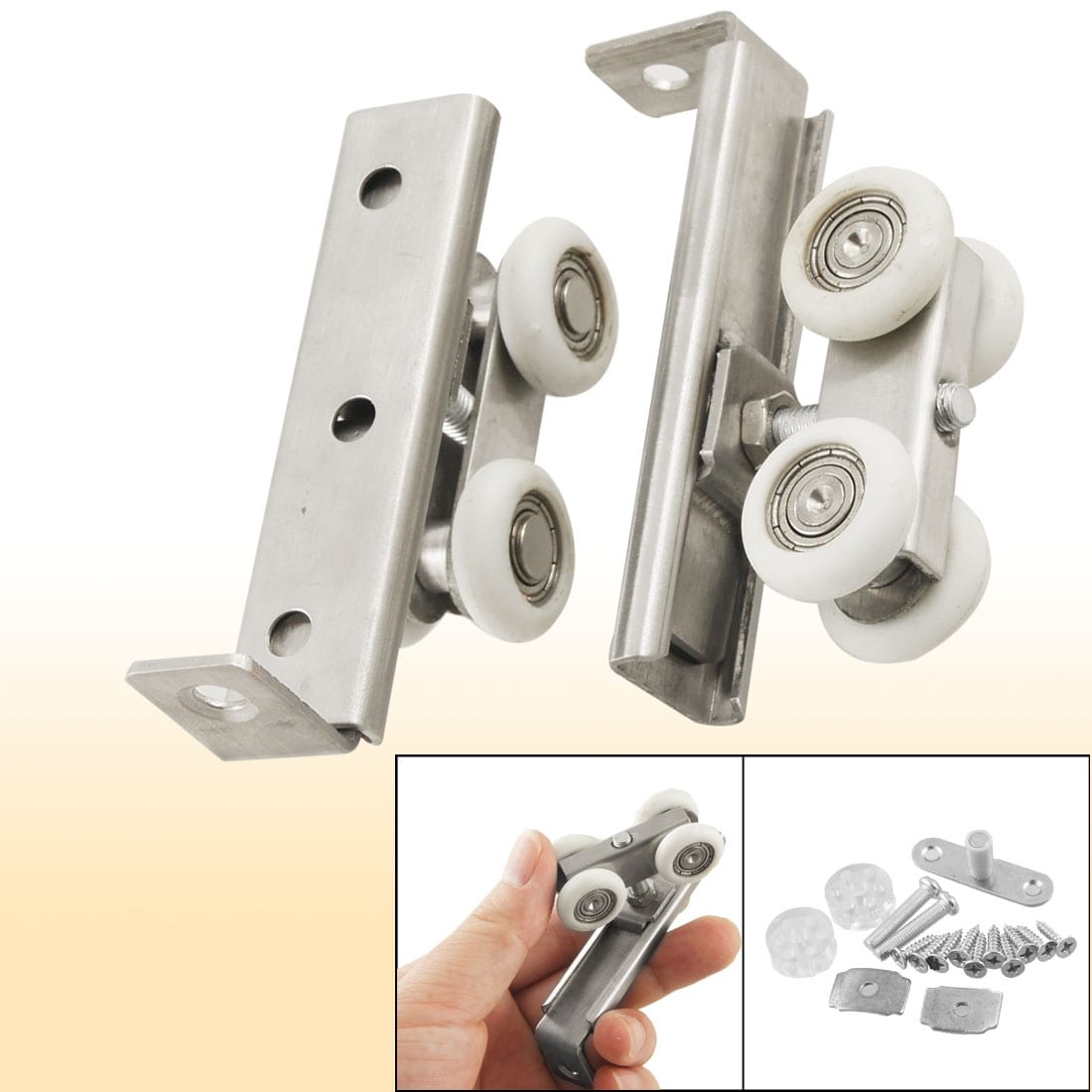 2 Pcs Ball Bearing 3/4" Dia Plastic Wheel Wardrobe Slide Door Roller - Silver Tone, White