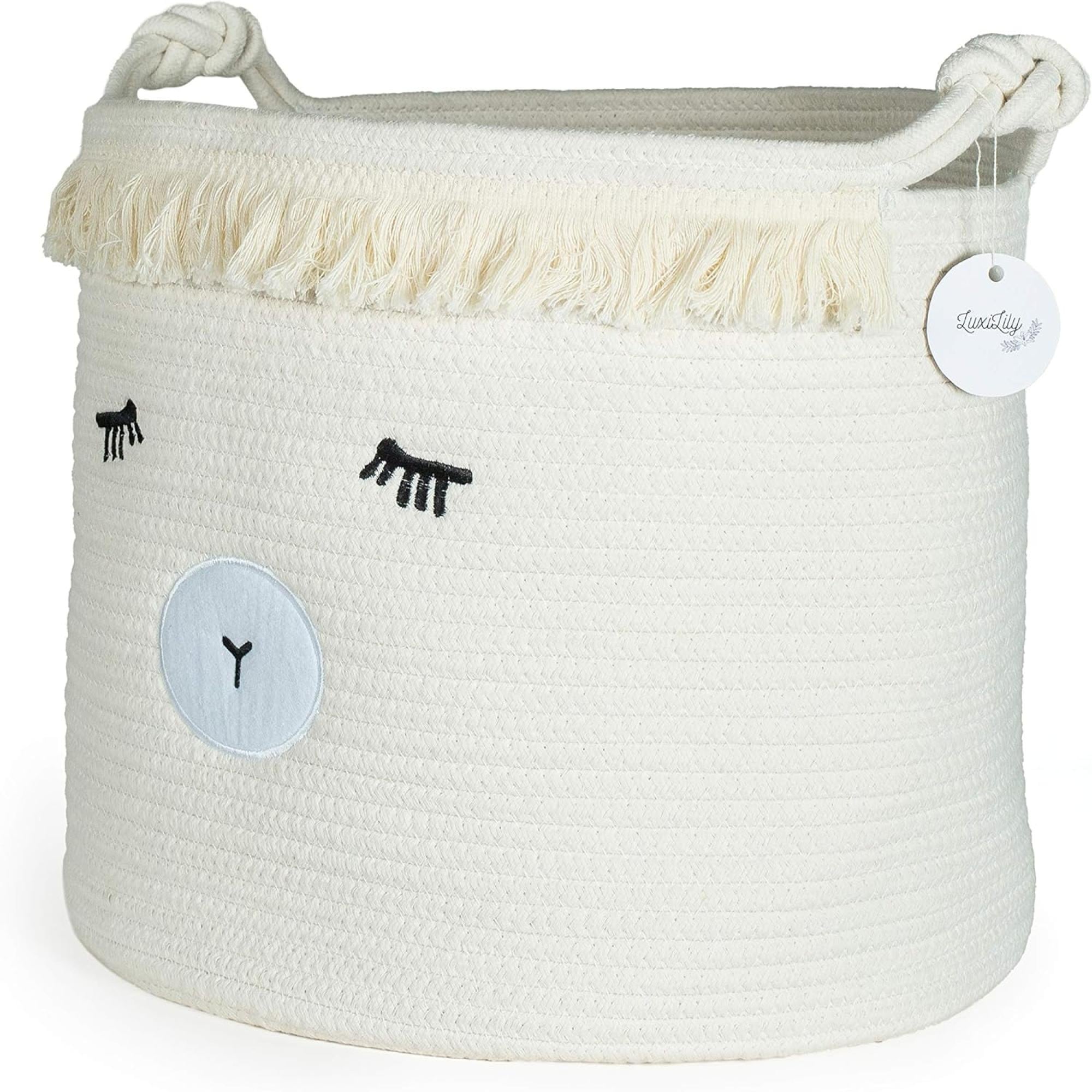 Woven Cotton Rope Baby Basket with Lamb Design 16 × 13 in Nursery Storage Bin and Toy Blanket Organizer
