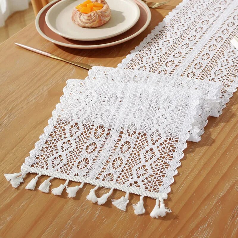 Vintage Beige Crochet Lace Table Runner For Coffee Table Decor Beige E 24x180cm