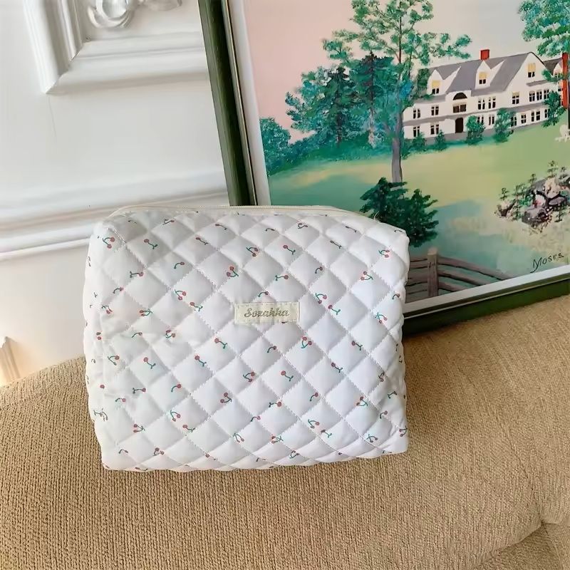 Large Capacity Travel Cosmetic Bag Zippered Makeup & Toiletry Organizer cherry C