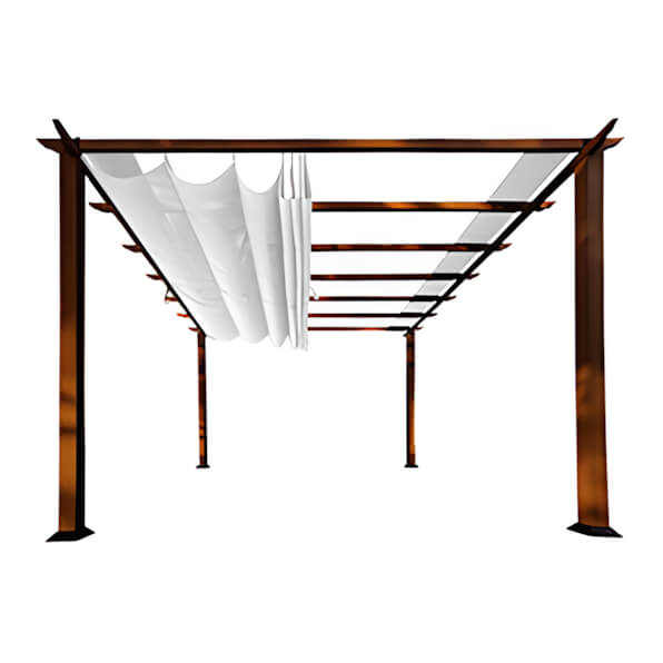Paragon Outdoor 11 x 11 ft. Florence Soft Top Aluminum Pergola (Canadian Wood / Off White Canopy)