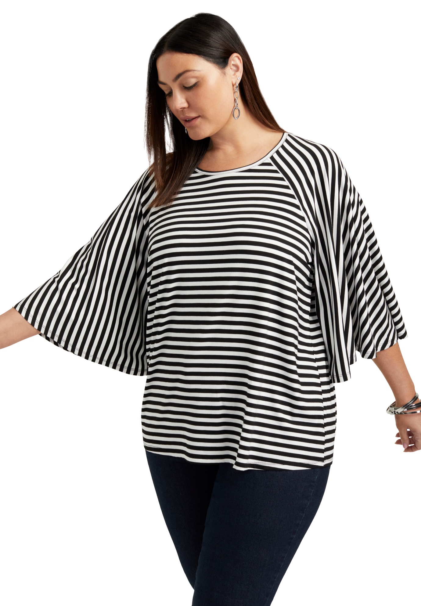 Plus Size Women's Flared Raglan Sleeve Breton Tee by June & Vie in Black White (Size 26/28)